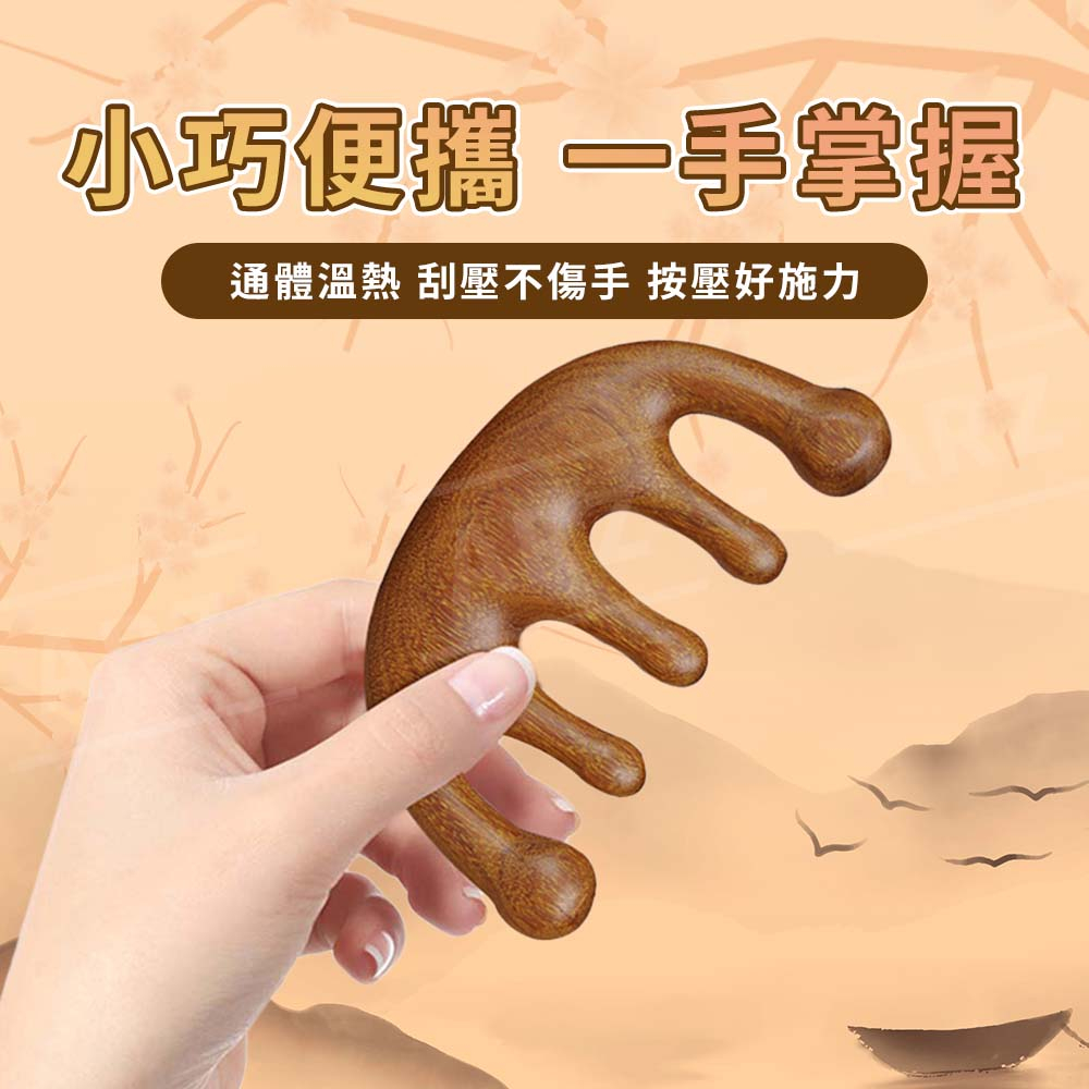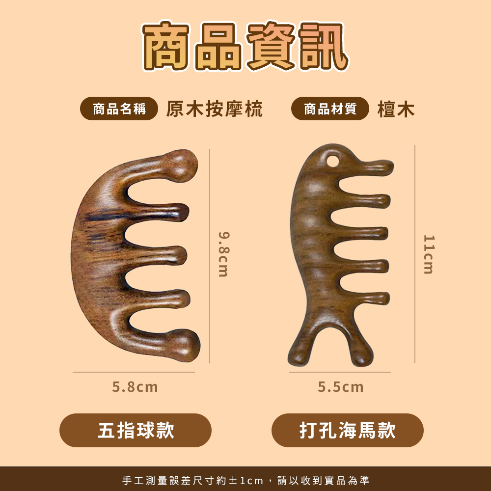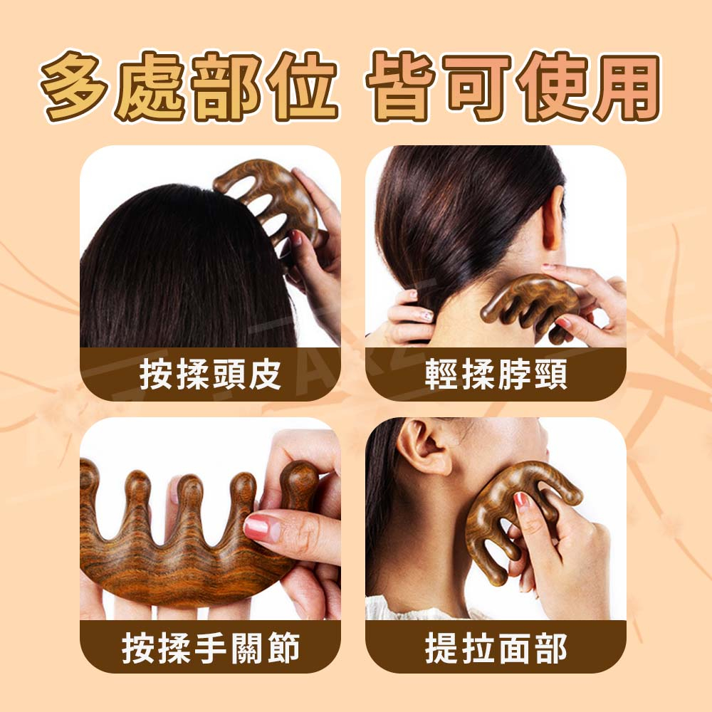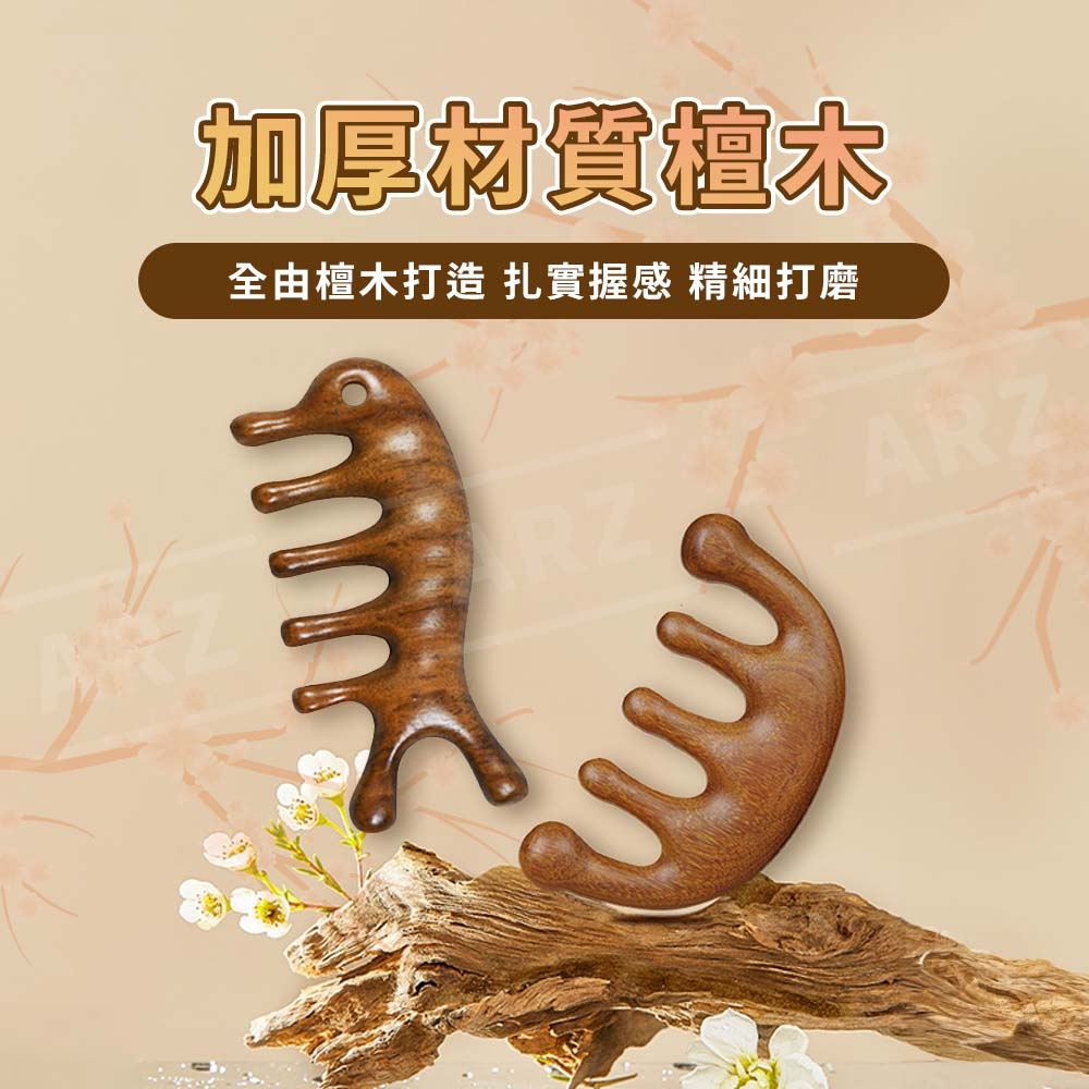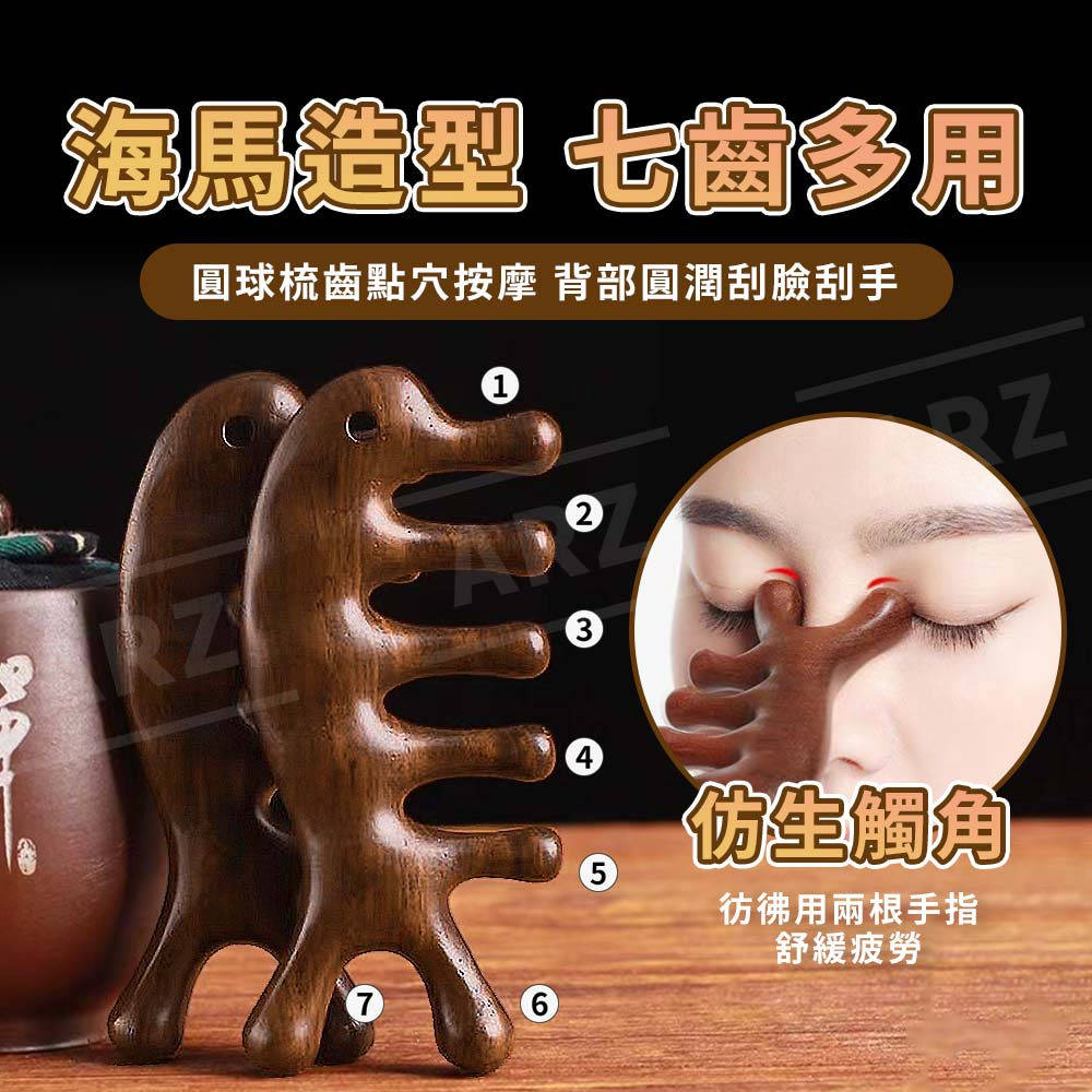 金絲檀按摩梳 經絡梳【ARZ 實拍現貨】【E144】排酸棒 刮痧板 頭皮按摩梳 頭皮按摩器 寬齒檀香木梳 頭皮梳 木頭梳打孔海馬款|五指球款Facial Care ToolsARZ行動商城