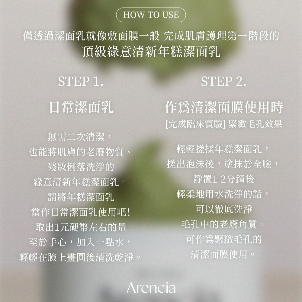 Arencia 綠意清新年糕潔面乳 120g 官方旗艦店120g|停產-50gFacial CleanserArencia 官方旗艦店