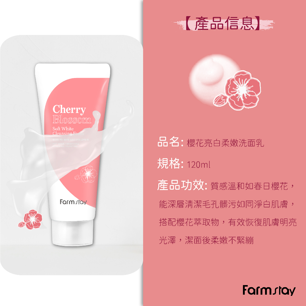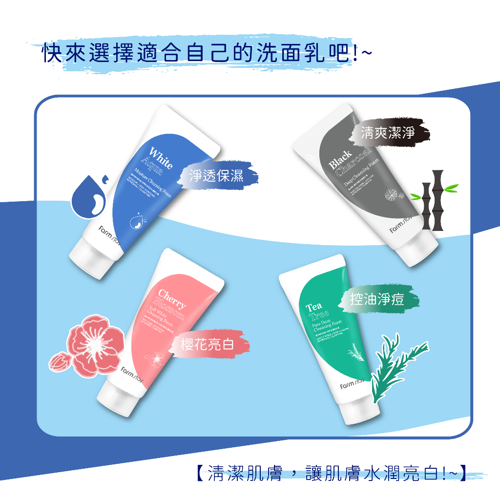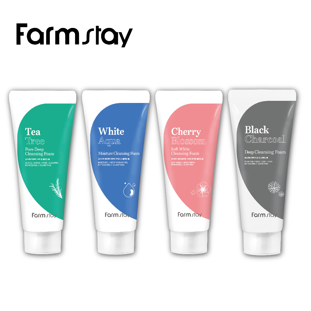 Farmstay 洗面乳120ml (多款任選) 韓國韓妝櫻花亮白柔嫩|極潤淨透保濕|茶樹控油淨痘|竹炭清爽潔淨Facial CleanserBeauty box 美麗百寶箱