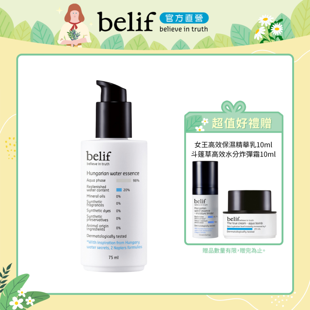 belif 匈牙利女王保濕水精華75ml|官方旗艦店單品|【女王水精華雙瓶組】|【8月限定加贈】Facial Serum & Essencebelif 官方旗艦店