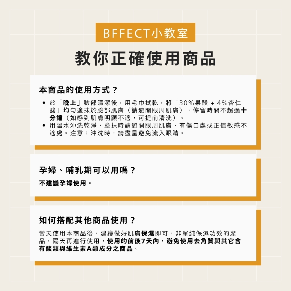 BFFECT【30%煥膚瓶】 30%果酸 + 4%杏仁酸 30ml 高濃度果酸精華液30%果酸 1入|30%果酸 2入Facial Serum & EssenceBFFECT 好肌膚精華研究室