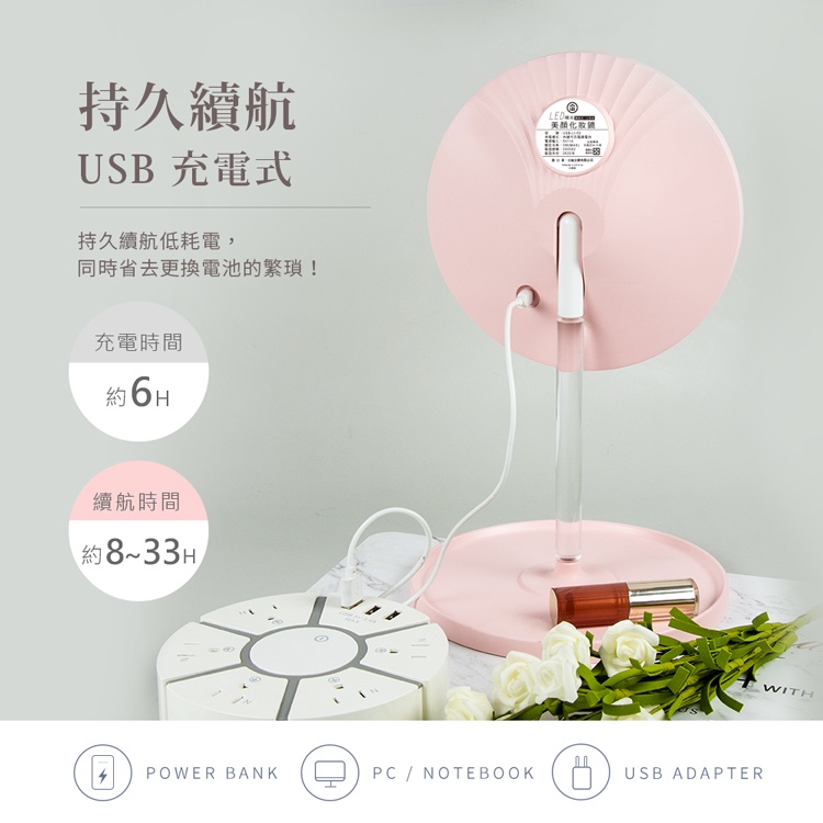 aibo 觸控 LED補光燈化妝鏡 【現貨】 USB充電 三色光 LED化妝鏡 化妝鏡 補光化妝鏡 梳妝鏡 LED鏡子福利品-白色(無保固)|粉紅|白色Makeup Accessoriesaibo 3C生活館