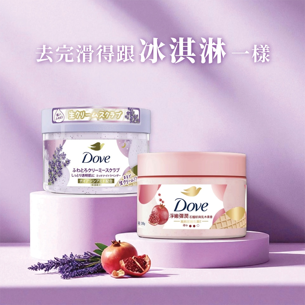 【多芬Dove】 冰淇淋去角質身體磨砂膏 298g 薰衣草 石榴籽與乳木果 身體保養 清爽不黏膩 去角質霜 磨砂膏石榴籽與乳木果 298g|薰衣草 298gBody Scrub & Peel【MPB巴黎小姐】 官方旗艦店 沙龍級 美髮 熱蠟除毛 美睫