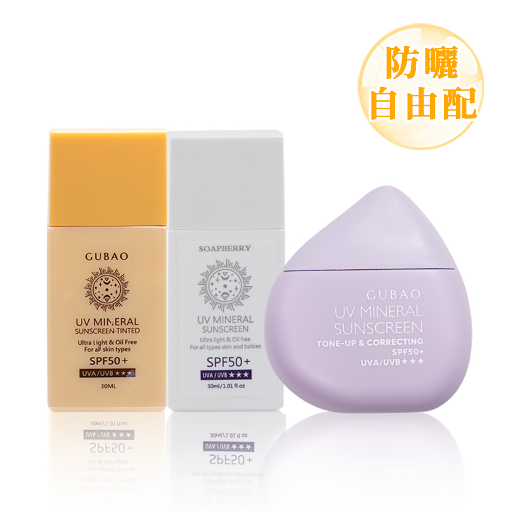 【古寶】奈米級物理防曬乳SPF50+★★★ 30ml _自由配(清透柔膚 / 潤色控油 / 提亮潤膚)清透柔膚(白瓶)|潤色控油(金瓶)|提亮潤膚(紫瓶)Face Sunscreen【官方直營】古寶無患子