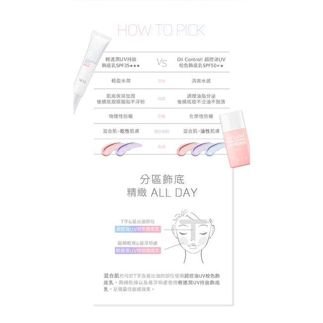 1028 輕透潤 UV持妝飾底乳SPF35(效期至2026/3)粉色(紅潤提亮)|紫色(修飾蠟黃)Face1028 官方旗艦館