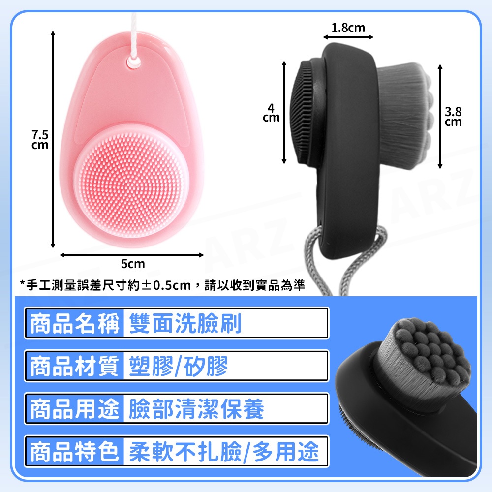 洗臉刷 3D雙面刷毛【ARZ】【F129】洗臉神器 矽膠 洗臉器 洗臉儀 潔面刷 毛孔 清潔刷 洗臉 洗顏 卸妝 按摩刷粉色|黑色Facial Care ToolsARZ行動商城