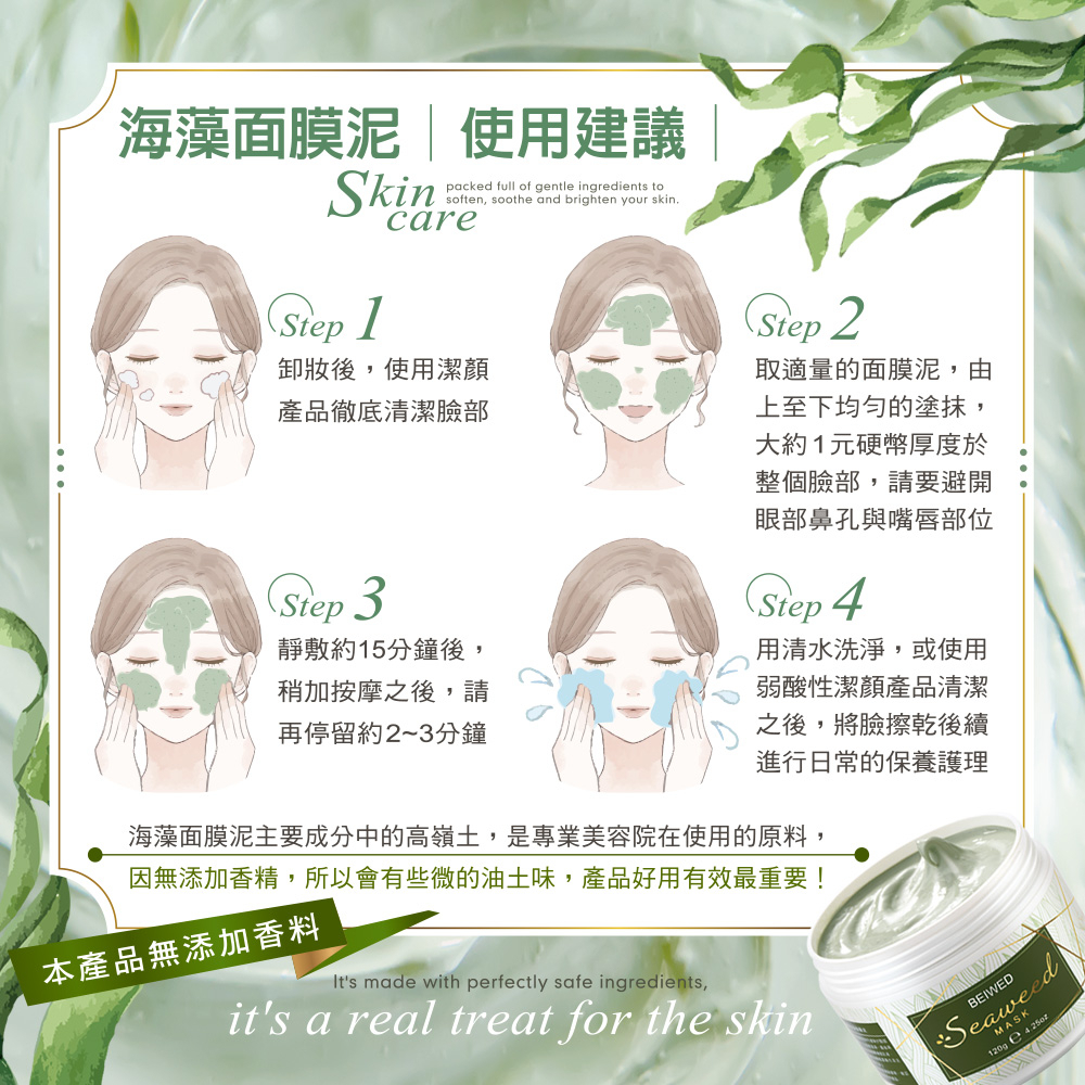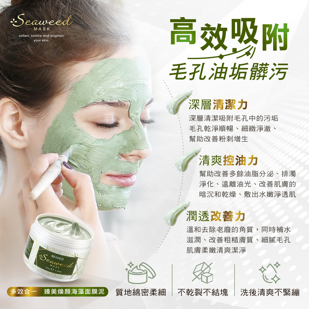 BEIWED 臻美煥顏海藻面膜泥 120g |淨脂控油|深層潔淨BEIWED 臻美煥顏海藻面膜泥 120g |淨脂控油|深層潔淨Face Mask & PacksBEIWED 貝薇美學官方旗艦店