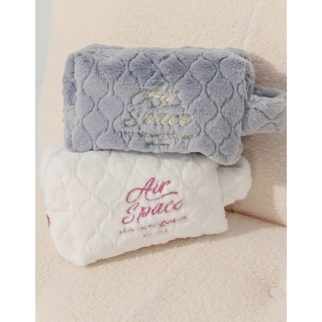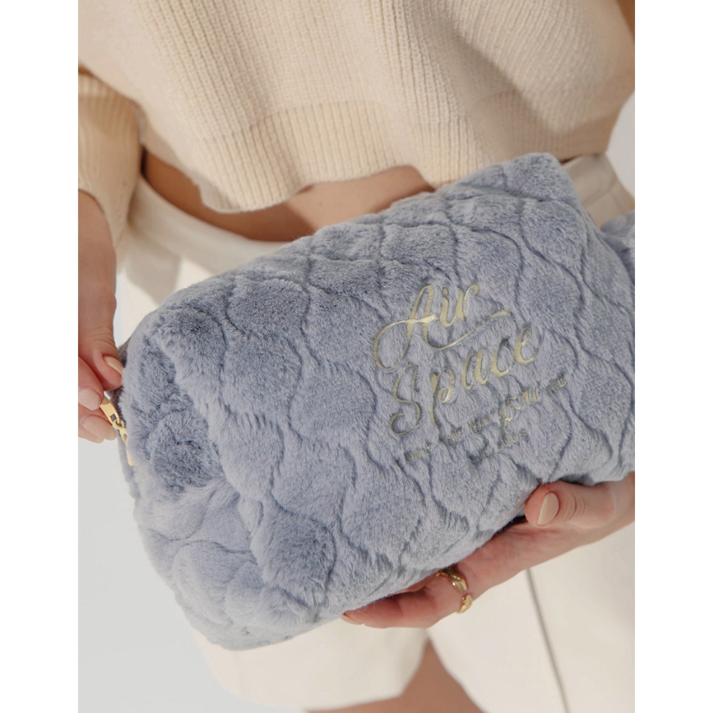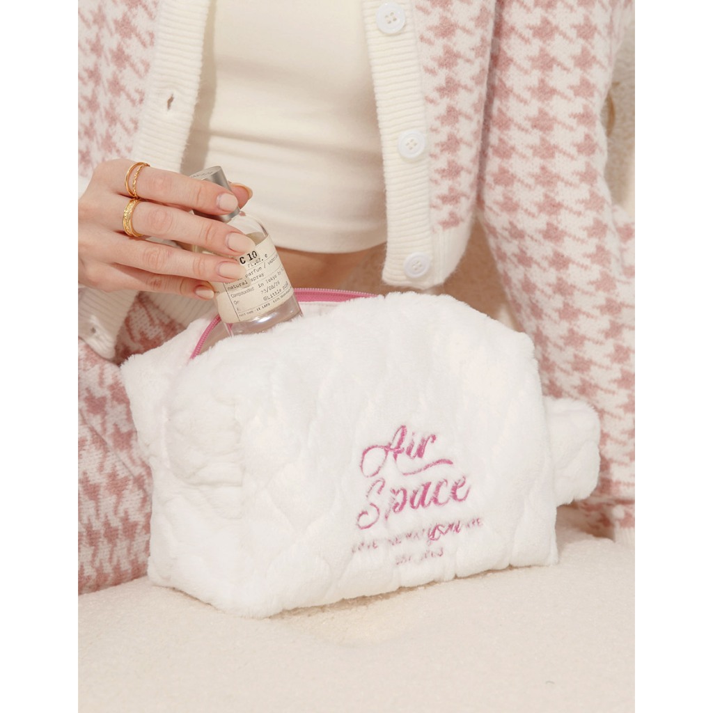 AIR SPACE 品牌LOGO刺繡絨毛手提化妝包(白/藍) 配件 現貨白,F|藍,FMakeup AccessoriesAIR SPACE