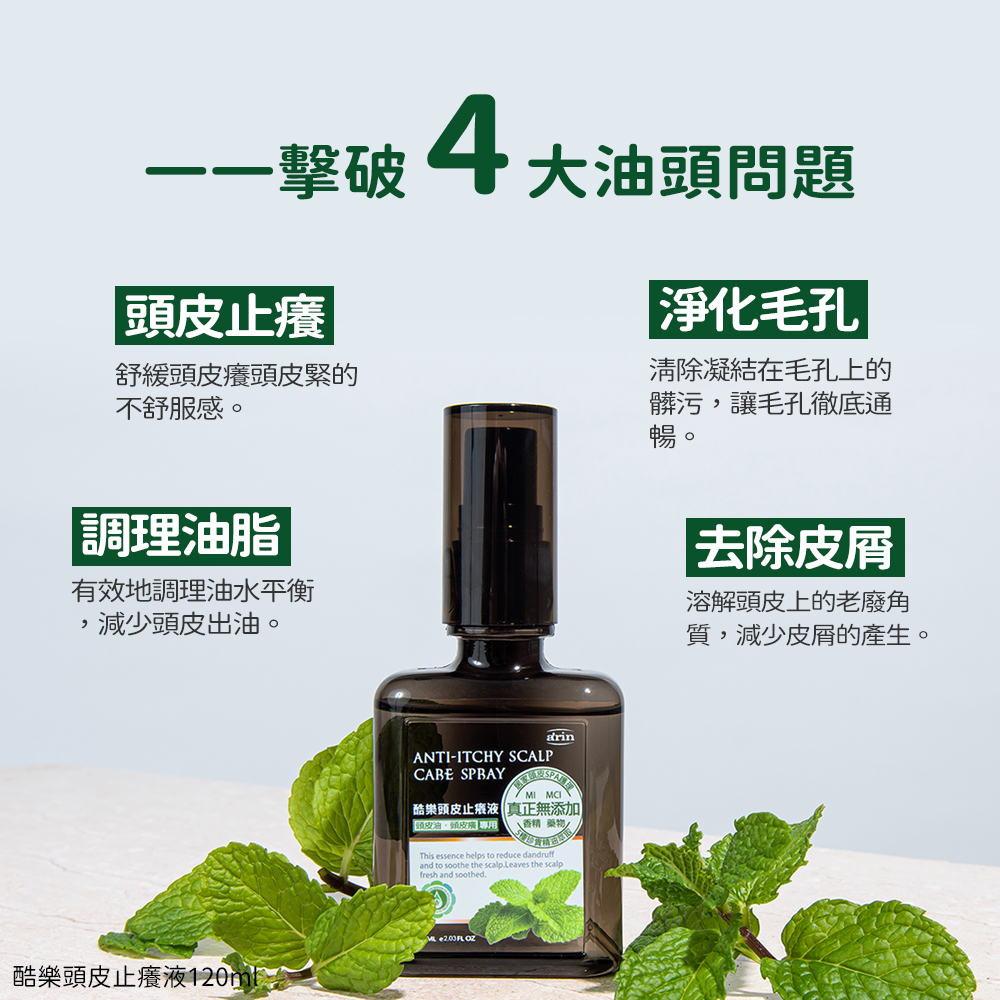 arin氧潤 頭皮去角質 頭皮水 香蜂草精油止癢去頭油味 迷迭香精油舒緩緊繃 60ml 止癢頭皮水 頭皮噴霧 頭皮調理酷樂60ml*1入|酷樂60ml*2入|酷樂60ml*3入Hair Treatmentarin氧潤藥妝官方旗艦店