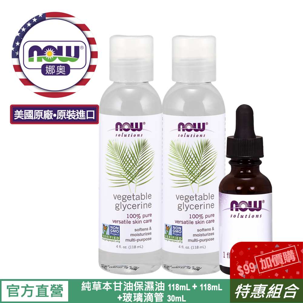 【NOW 娜奧】 純草本甘油保濕油/基底油 118ml~效期08/2028~2入特惠組+玻璃滴管 Now Foods現貨Facial Oil【NOW娜奧】官方旗艦店