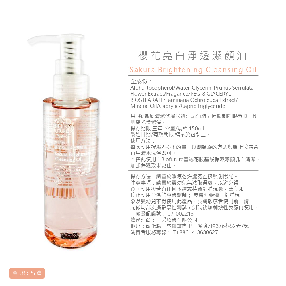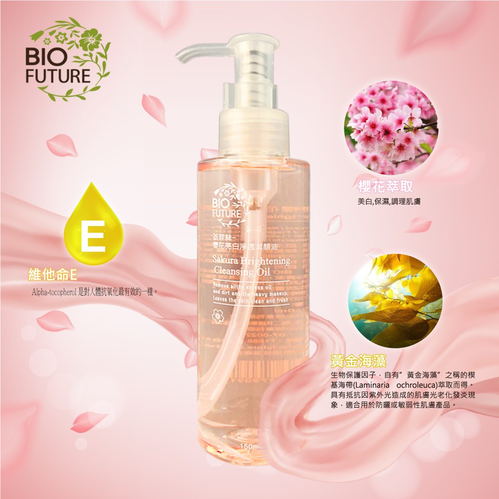 BIOFUTURE 苾菲絲 櫻花亮白淨透潔顏油 150ml 卸妝油 快速卸淨 溫和卸妝 防水睫毛膏可卸 洗後不乾澀150mlMakeup RemoversBIO FUTURE 苾菲絲