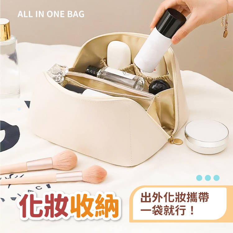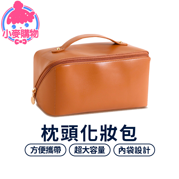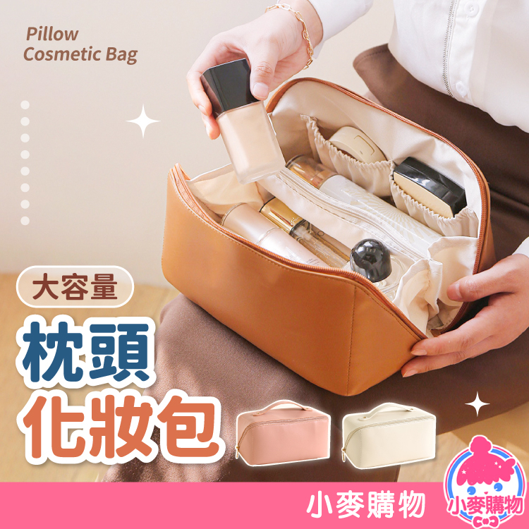 枕頭化妝包 化妝包 收納包 收納 收納袋 置物袋 手提收納 包包 旅行 美妝用品 化妝品 大容量【小麥購物】【E073】經典黑|拿鐵棕|牛奶白|玫瑰粉Makeup Accessories 小麥購物
