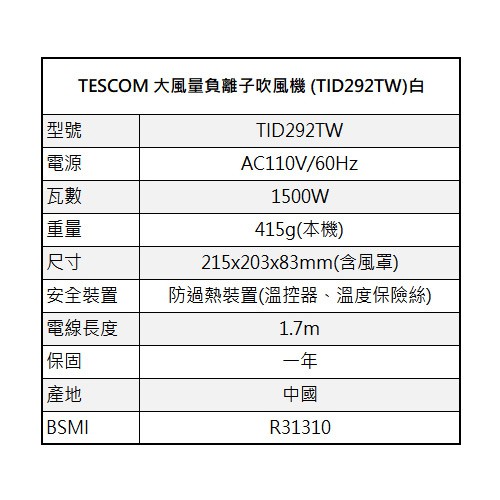 十倍蝦幣 公司全新現貨到貨 【TESCOM 】大風量負離子吹風機 TID292TW 白色 TID-292TW十倍蝦幣 公司全新現貨到貨 【TESCOM 】大風量負離子吹風機 TID292TW 白色 TID-292TWHair Tools【E-MAN】電氣男數位購物商城