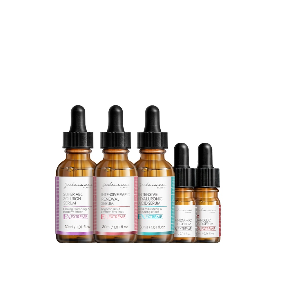 會員限定優惠價-精華原液組《玻尿酸30ml+三重酸30ml+ABC音波精華30ml+杏仁酸5ml+傳明酸5ml各1》會員限定優惠價-精華原液組《玻尿酸30ml+三重酸30ml+ABC音波精華30ml+杏仁酸5ml+傳明酸5ml各1》Facial Serum & Essence【Jealousness婕洛妮絲】官方旗艦店