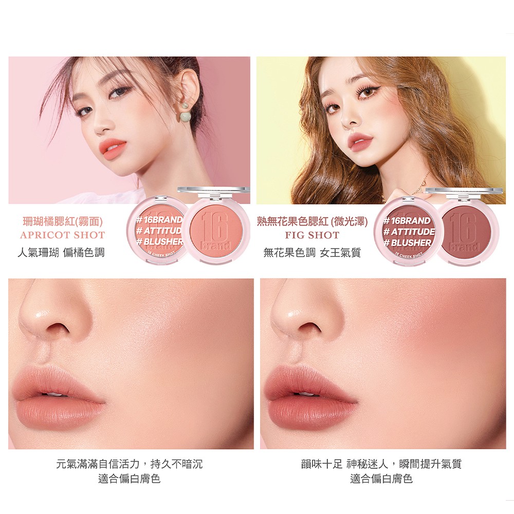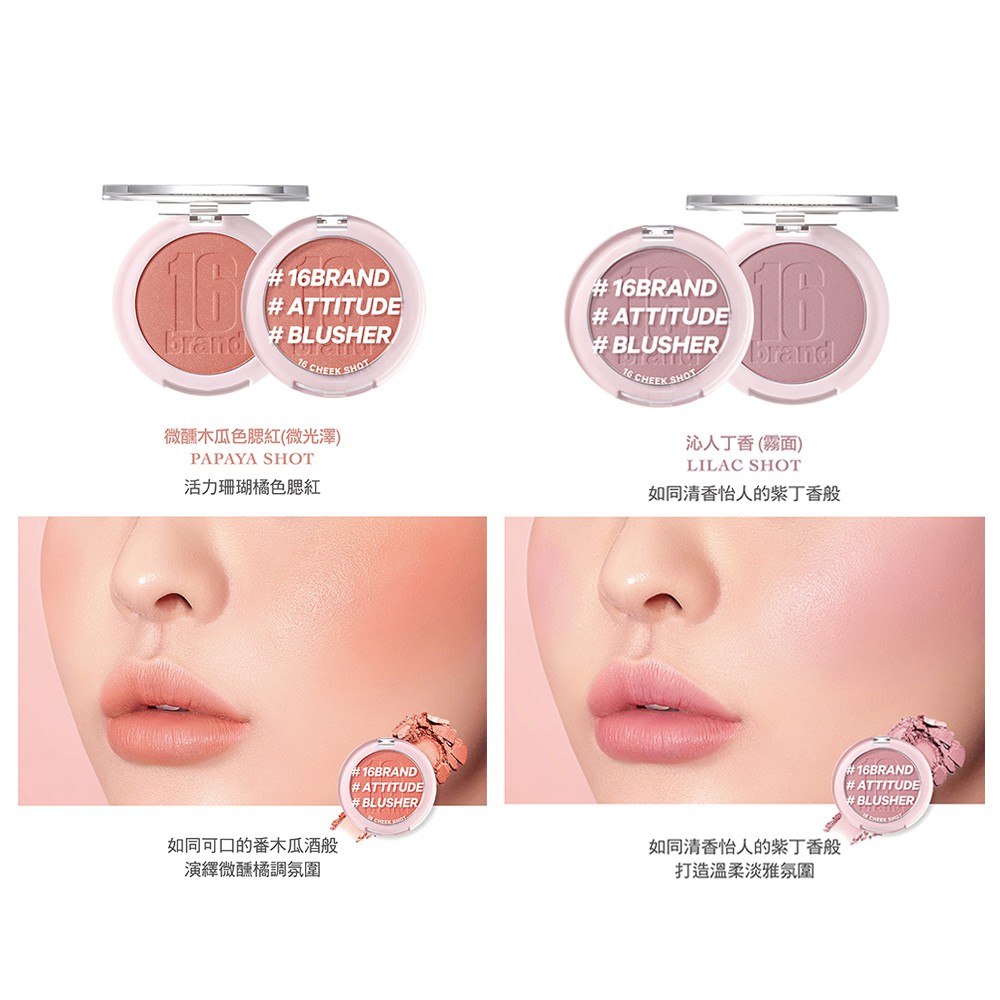 【16 Brand】元氣少女雲霧腮紅(全六款)杏色裸色(微光澤) MILK TEA|微醺木瓜色(微光澤) PAPAYA|沁心丁香腮紅(霧面) LILAC|熟無花果色(微光澤) FIG|牛奶蜜桃色(霧面) PEACH FOAM|珊瑚橘(霧面) APRICOTFace16brand 官方旗艦店
