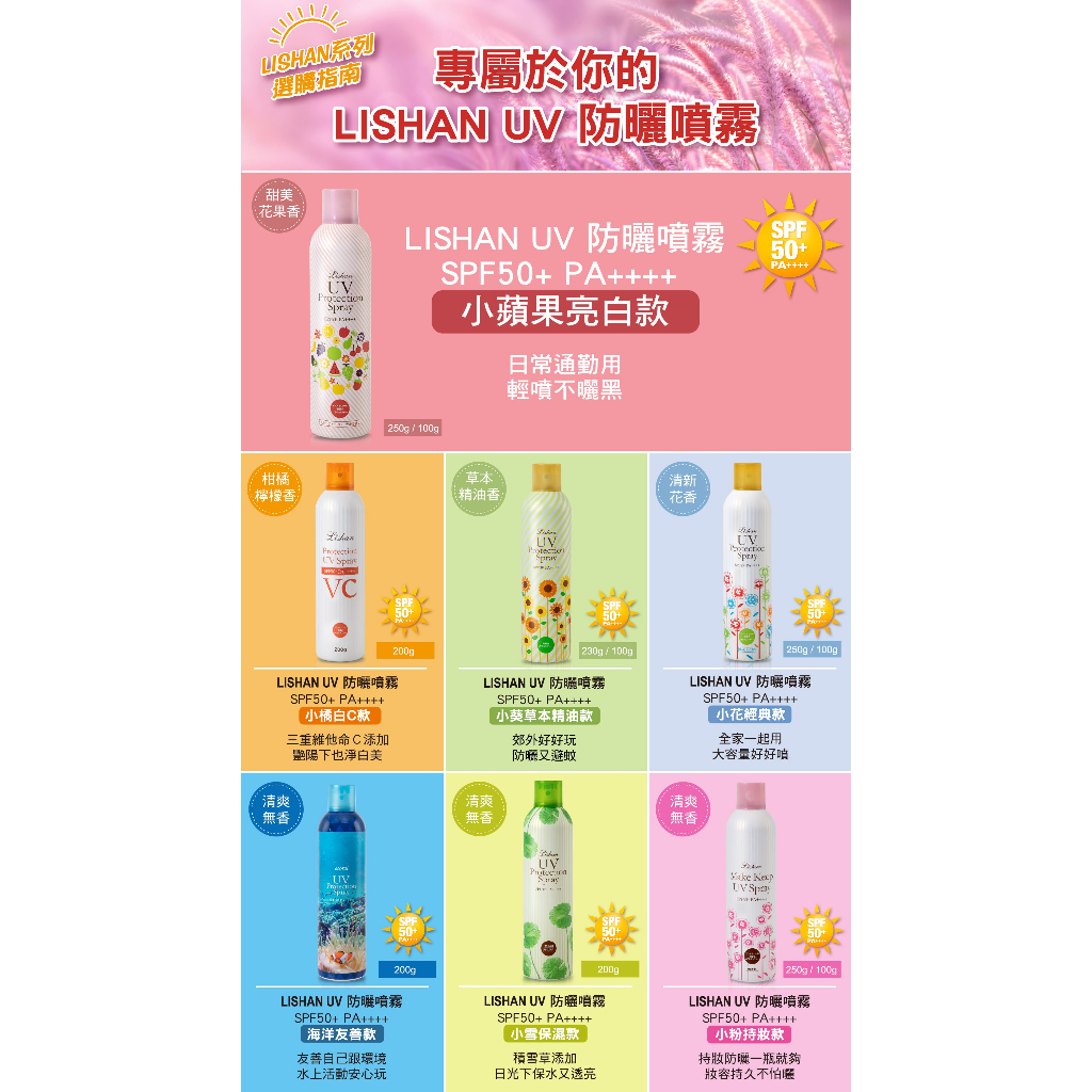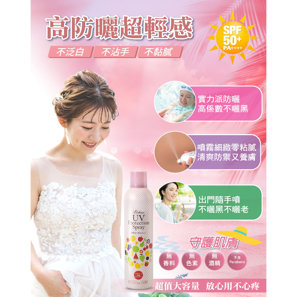 LISHAN UV 防曬噴霧 SPF50+ 100g (亮白款) 隨身瓶 防曬 無色 無酒精 噴霧 涼感防曬 清爽 美白LISHAN UV 防曬噴霧 SPF50+ 100g (亮白款) 隨身瓶 防曬 無色 無酒精 噴霧 涼感防曬 清爽 美白Sun Care【官方直營】好日子 HOWDAY.好市集