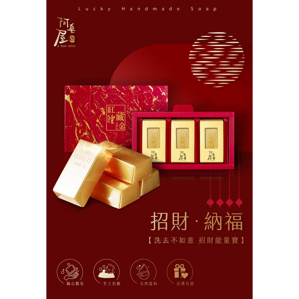 手工皂禮盒推薦-開運金條檀香手工皂(紅禮藏金)禮盒手工皂禮盒推薦-開運金條檀香手工皂(紅禮藏金)禮盒Body Wash & Soap【阿皂屋-掌心裡的微好時光 旗艦店】