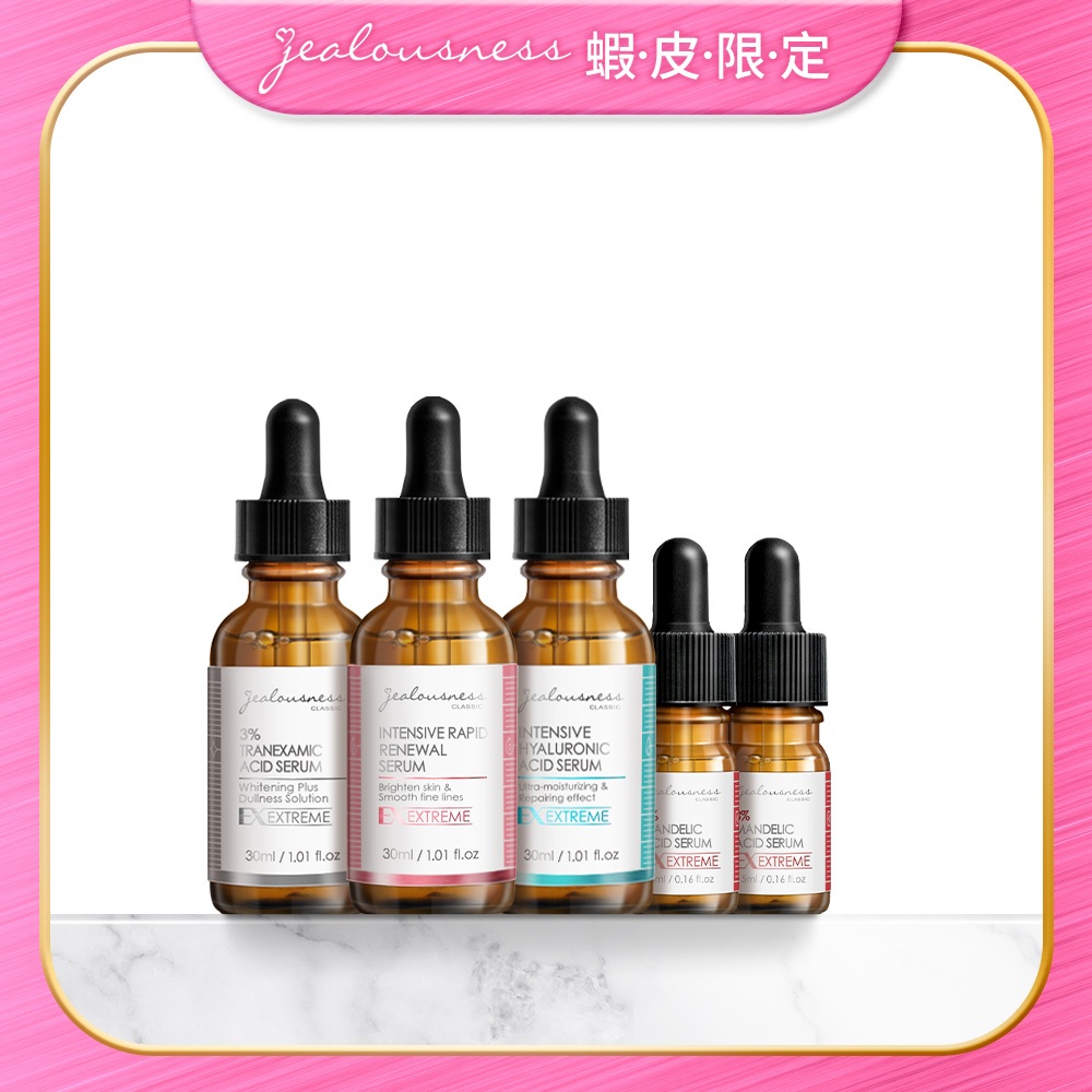會員限定優惠價-精華原液組《玻尿酸30ml*1+三重酸30ml*1+傳明酸30ml*1+杏仁酸5ml*2》會員限定優惠價-精華原液組《玻尿酸30ml*1+三重酸30ml*1+傳明酸30ml*1+杏仁酸5ml*2》Facial Serum & Essence【Jealousness婕洛妮絲】官方旗艦店