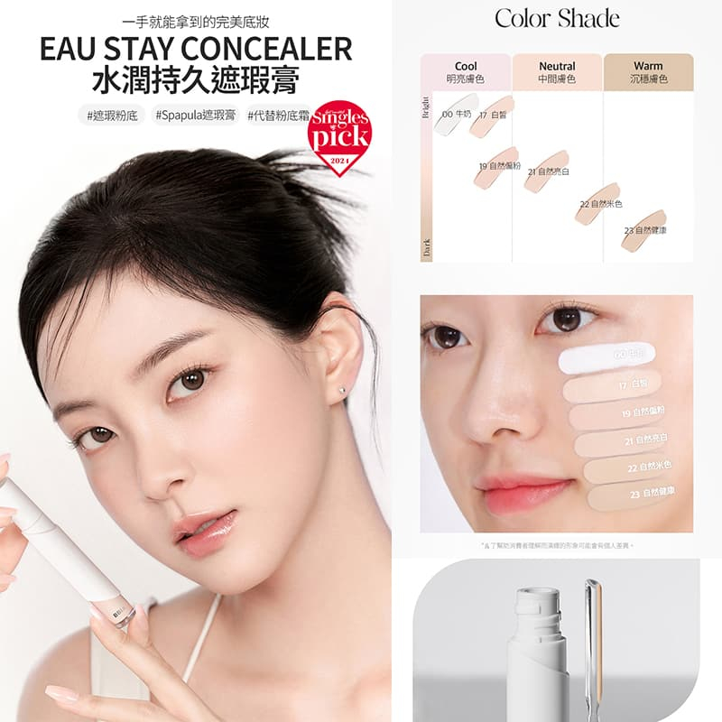 【Bbia 碧娥】新款 EAU STAY CONCEALER水潤持久遮瑕膏 6色 粉底遮瑕 現貨速寄#00 MILK牛奶|#19 PORCELAIN 自然偏粉|#22 BEIGE 自然米色|#17 FAIR 白皙|#21 LIGHT 自然白皙|#23 NATURAL 自然FaceBBIA & EGLIPS 台灣官方旗艦店(台灣唯一總代理)