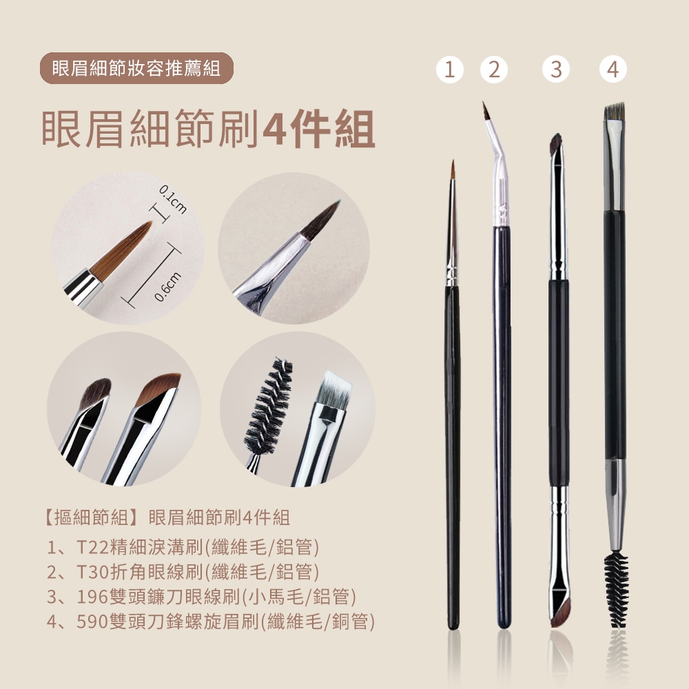BAYBEYLA 貝貝拉 秀眉刀鋒精細眼眉刷【隔日到貨】刀鋒刷 眼線刷 一字刷 平頭刷 斜眉刷 筆刷 淚溝刷 精細刷T301雙用遮瑕刷(纖維毛/海綿頭)|【摳細節組】精細眼眉刷4件組|T30折角眼線刷(纖維毛)|T22精細點瑕刷(纖維毛)|590雙頭刀鋒螺旋眉刷(纖維毛/銅管)Makeup AccessoriesBAYBEYLA 貝貝拉-專業彩妝刷具品牌