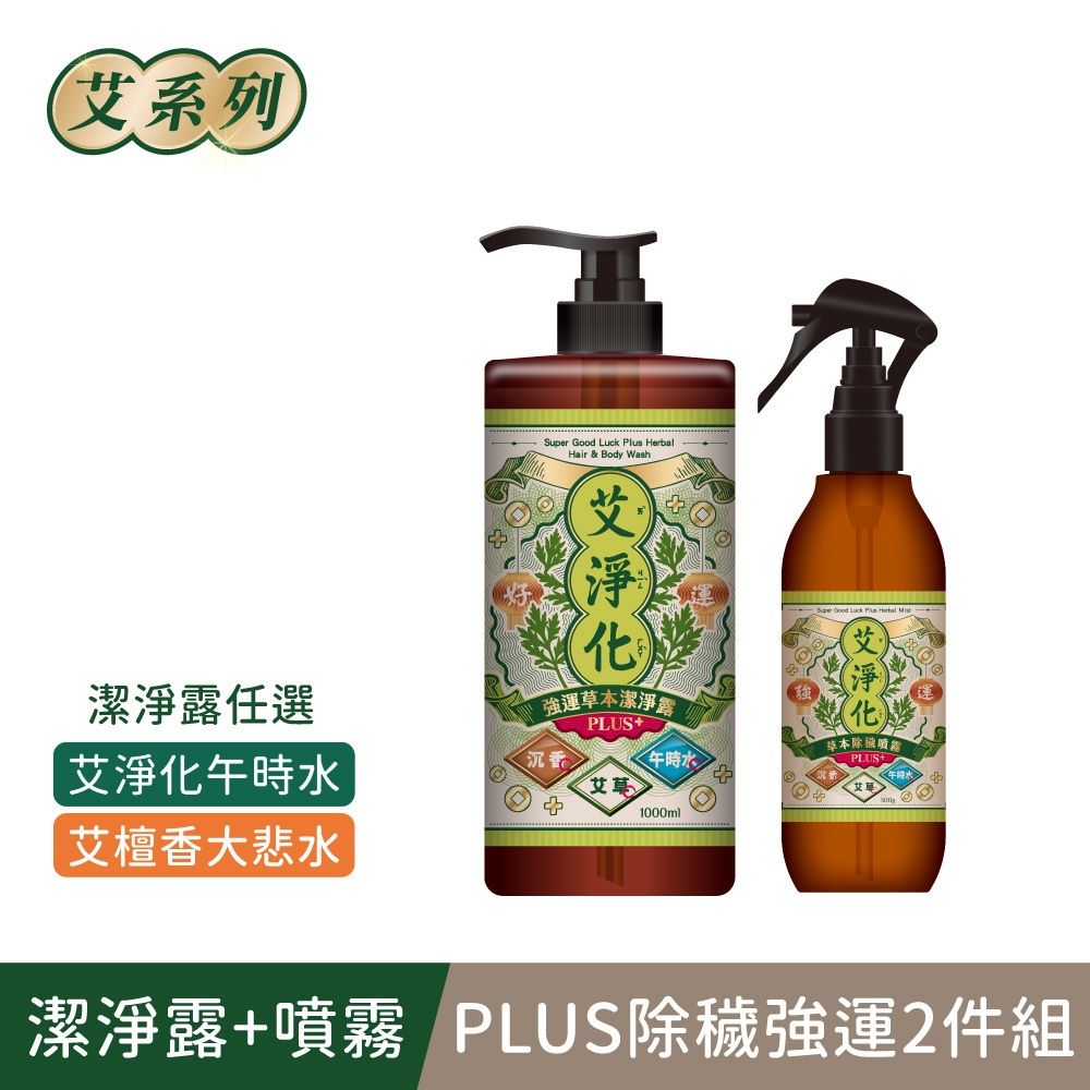【美吾髮】艾系列 艾淨化午時水PLUS強運除穢組(潔淨露1000ml任選1+除穢噴霧300g)艾草/沐浴/洗髮艾淨化午時水潔淨露,艾淨化午時水PLUS除穢噴霧300g|艾檀香大悲水潔淨露,艾淨化午時水PLUS除穢噴霧300gBody Wash & Soap【美吾髮購物網】