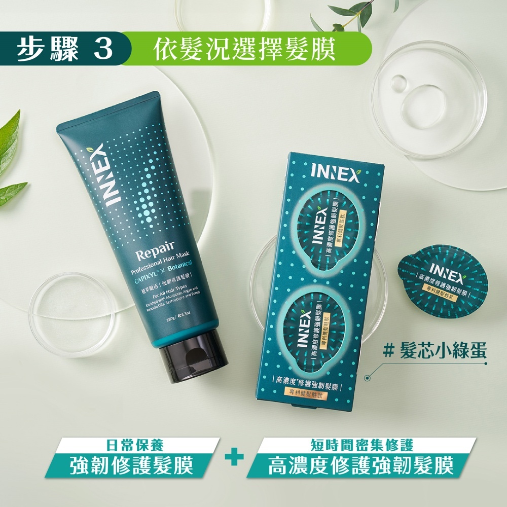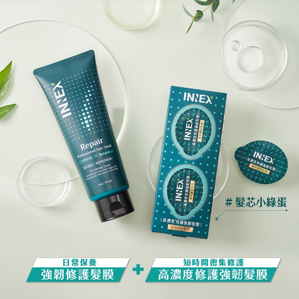 (點數兌換用)【美吾髮】INNEX植萃賦活 高濃度修護強韌髮膜(12g*2顆/盒)沖洗式爆水髮膜/膠囊髮膜/髮芯小綠蛋修護強韌髮膜X1盒Hair Treatment【美吾髮購物網】
