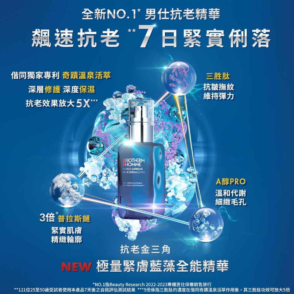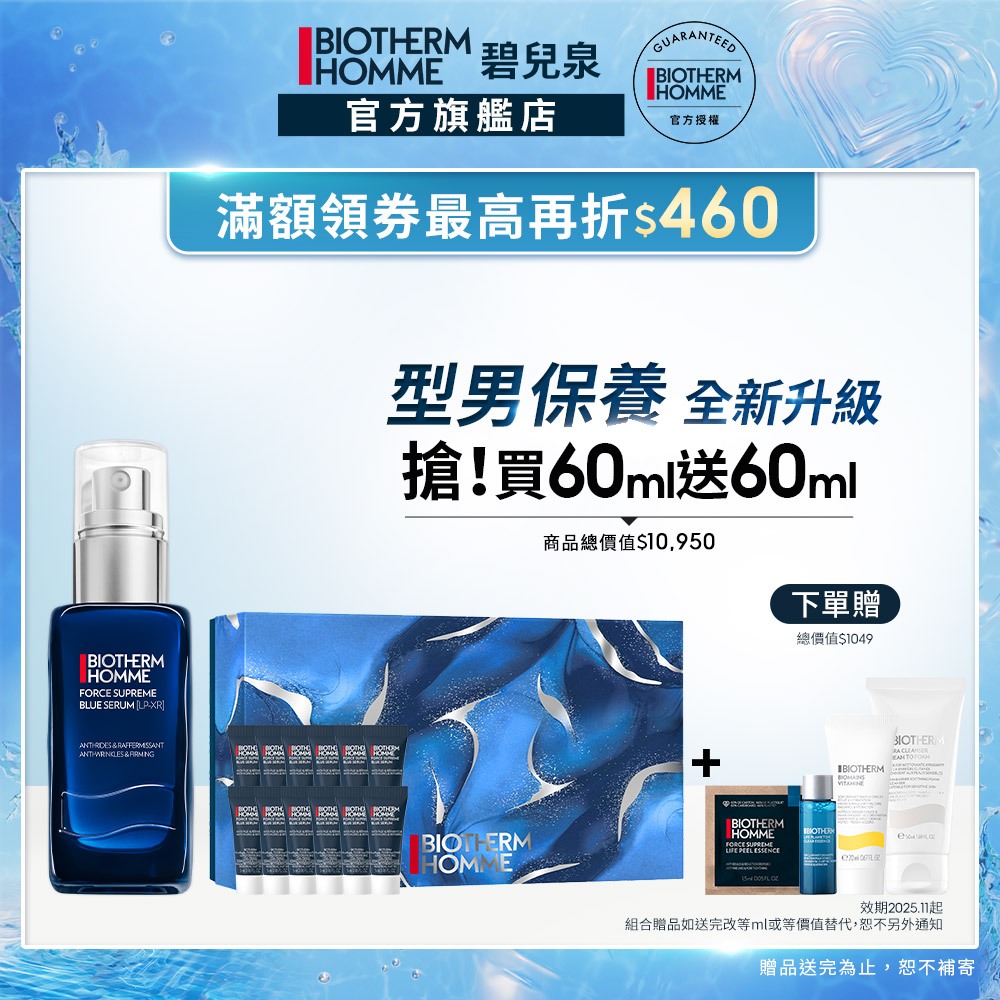 碧兒泉 男仕極量緊膚藍藻全能精華60ml|緊實 男生保養 |BIOTHERM 官方旗艦店藍藻5mlx12+禮盒|精華5ml*3|下單無贈品|潔面霜40ml+精華5ml*2+包SkincareBIOTHERM 碧兒泉官方旗艦店