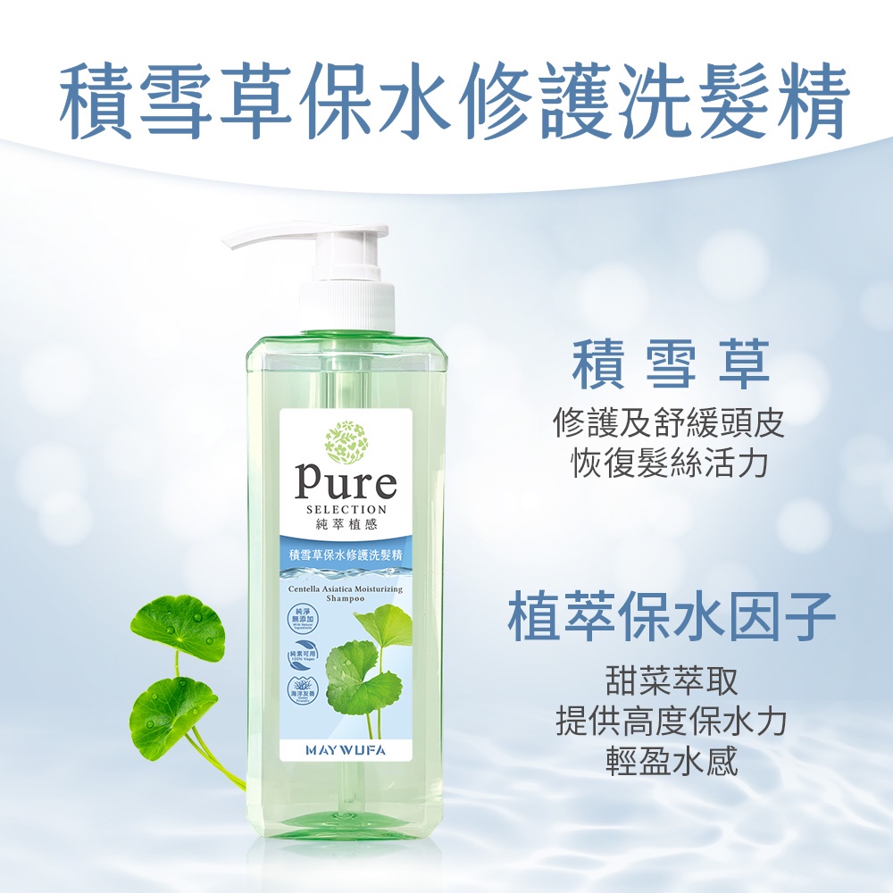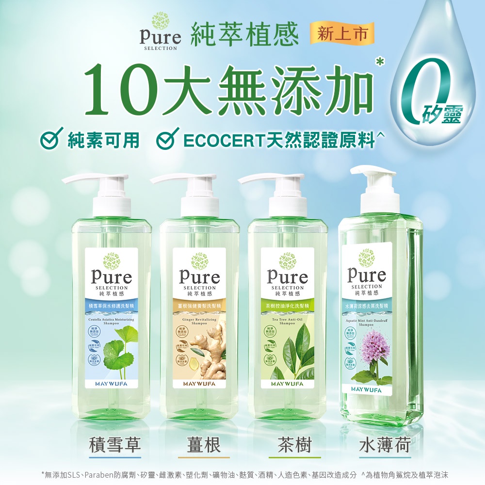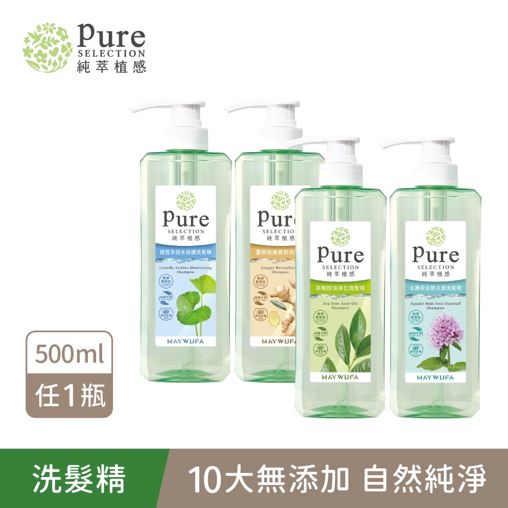 【美吾髮】純萃植感 無矽靈純素天然系洗髮精500ml(單入)積雪草保水/薑根強健/茶樹控油/水薄荷涼感去屑/有機茶樹控油淨化x1|水薄荷涼感去屑x1|積雪草保水x1|薑根強健養髮x1Shampoo【美吾髮購物網】