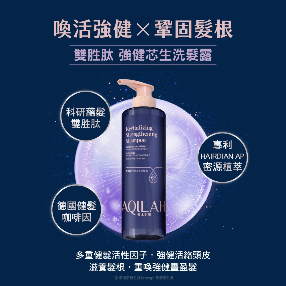 【美吾髮】AQILAH髮本對策 雙胜肽強健芯生豐盈彈韌洗髮精520ml(單入)強健/豐盈/控油/去屑/奇蹟小藍瓶強健芯生,無|豐盈彈韌,無|控油平衡,無|去屑調理,無Shampoo【美吾髮購物網】