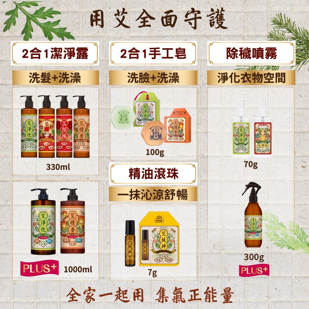 【美吾髮】艾系列 強運除穢事事如意(潔淨露/噴霧/皂 任4件)淨化/檀香/招財/招福/潔淨露/艾草皂/平安皂艾淨化潔淨露X4|艾招財潔淨露X4|艾招福潔淨露X4|潔淨露(艾淨化+艾招財+艾招福+艾檀香)|艾檀香潔淨露X4|艾淨化皂X4|艾檀香皂X4|艾淨化除穢噴霧X4|艾提神沁涼精油滾珠瓶X4|艾淨化潔淨露X2+艾檀香潔淨露X2|艾檀香潔淨露X2+艾招福+艾招財|艾提神+噴霧+艾淨化潔淨露+艾招財潔淨露Body Wash & Soap【美吾髮購物網】