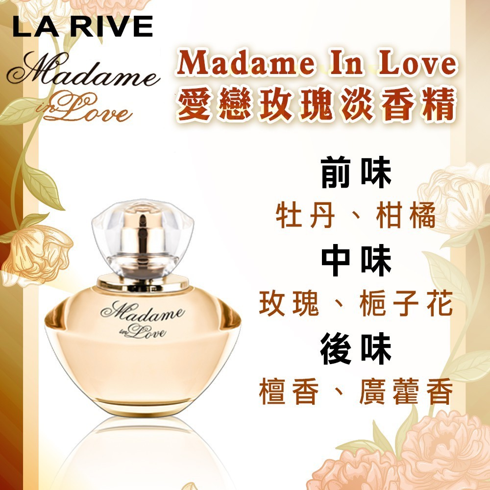 LA RIVE Madame In Love 愛戀玫瑰淡香精(90ml)香水/牡丹/柑橘/玫瑰/梔子花/檀香/廣藿香90mlACI精品香水