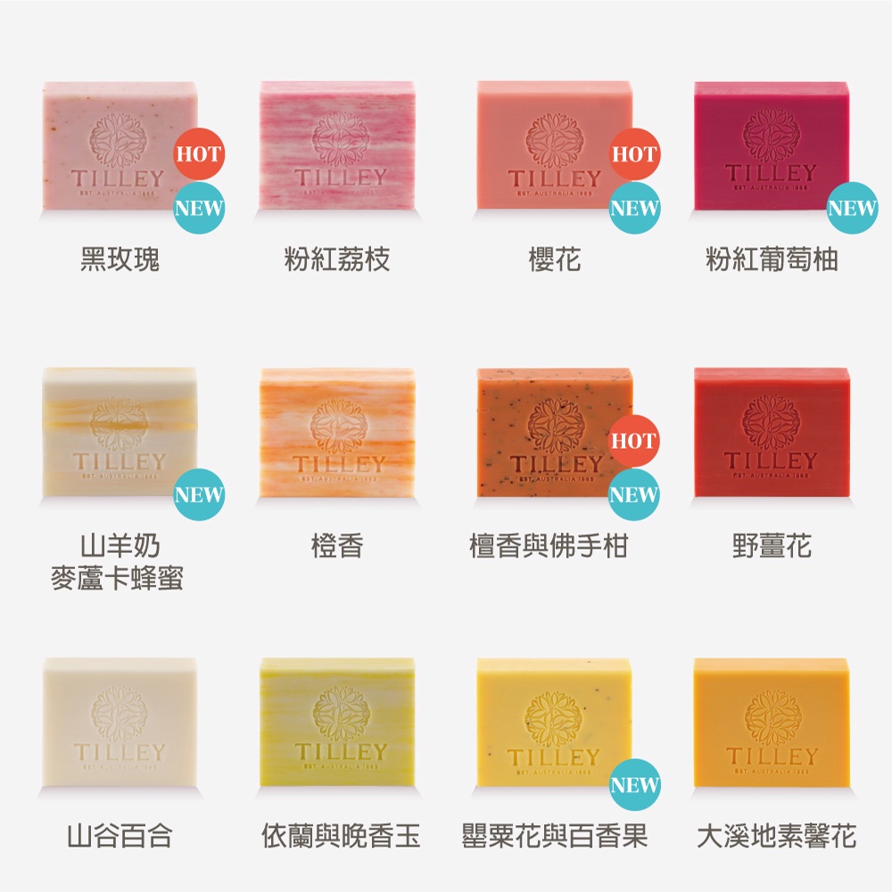 【Tilley 皇家特莉】澳洲植萃香氛皂 100g (多款可選)塔斯馬尼亞薰衣草|黑玫瑰|木蘭與綠茶|罌粟花與百香果|野薑花|山羊奶麥蘆卡蜂蜜|橙香|檀香與佛手柑|梔子花|大溪地素馨花|檸檬香桃木|廣藿與麝香|山谷百合|牡丹玫瑰|粉紅荔枝|扶桑木槿Body Wash & SoapAha我就問生活百貨