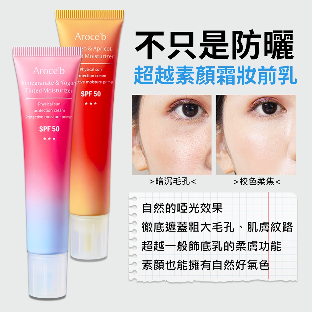 【Aroce’b艾珞皙】修護潤色防曬2入組-兩入8折 雙色自選 隱形毛孔 SPF50石榴優格2入|芒果杏桃2入|優格芒果各1入Aroce’b 艾珞皙 官方旗艦店