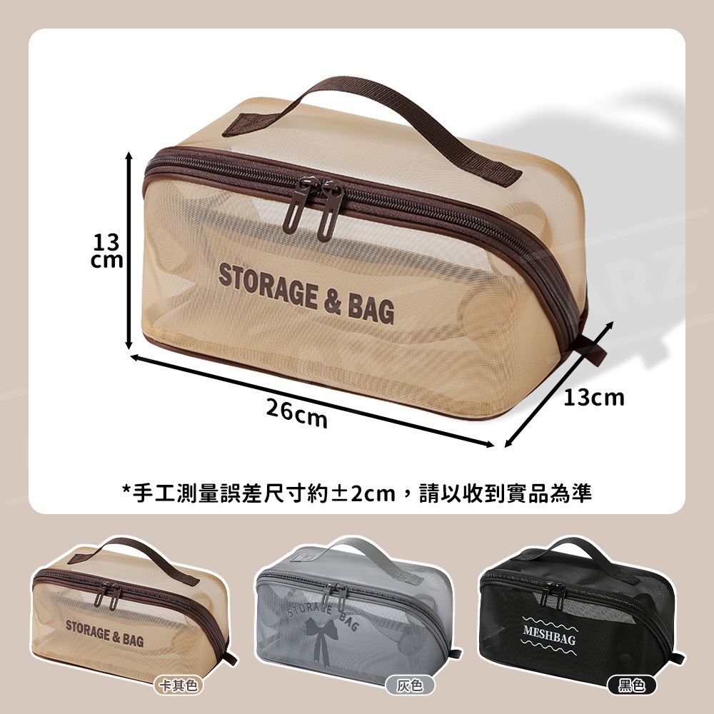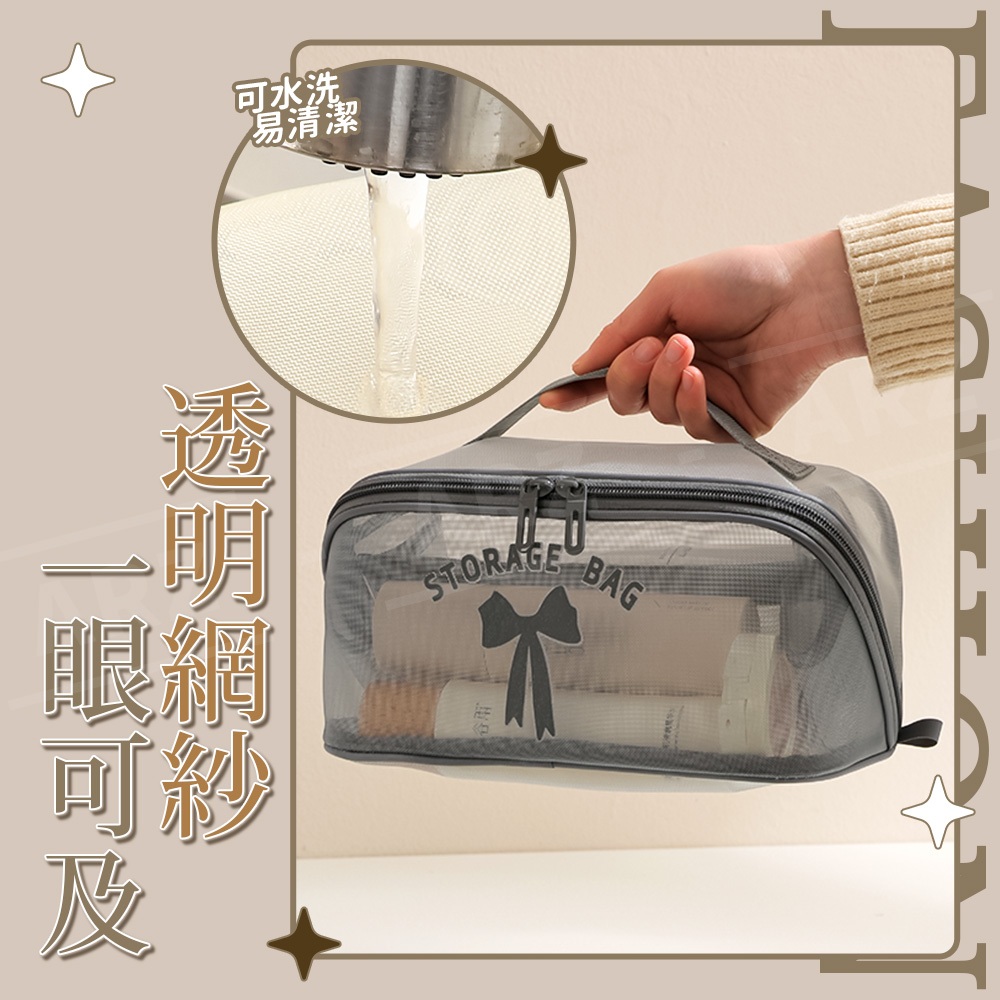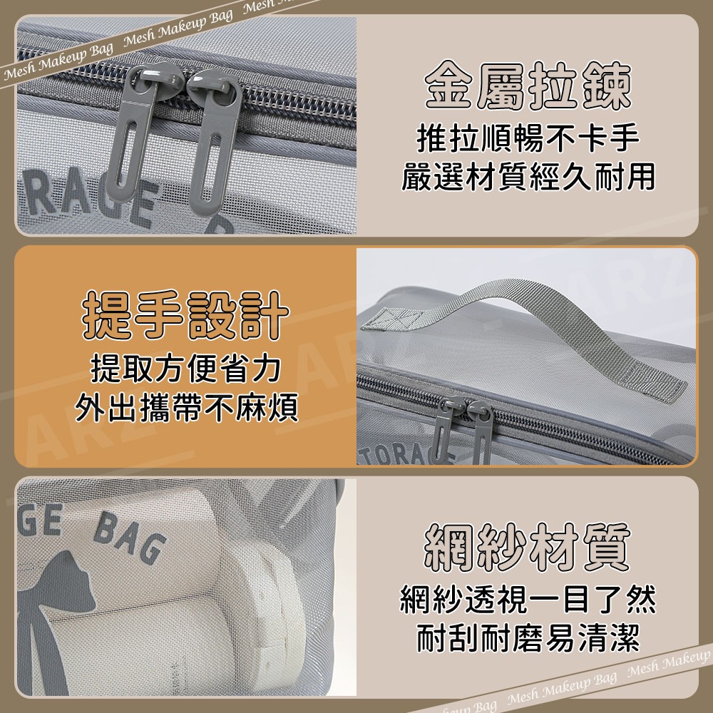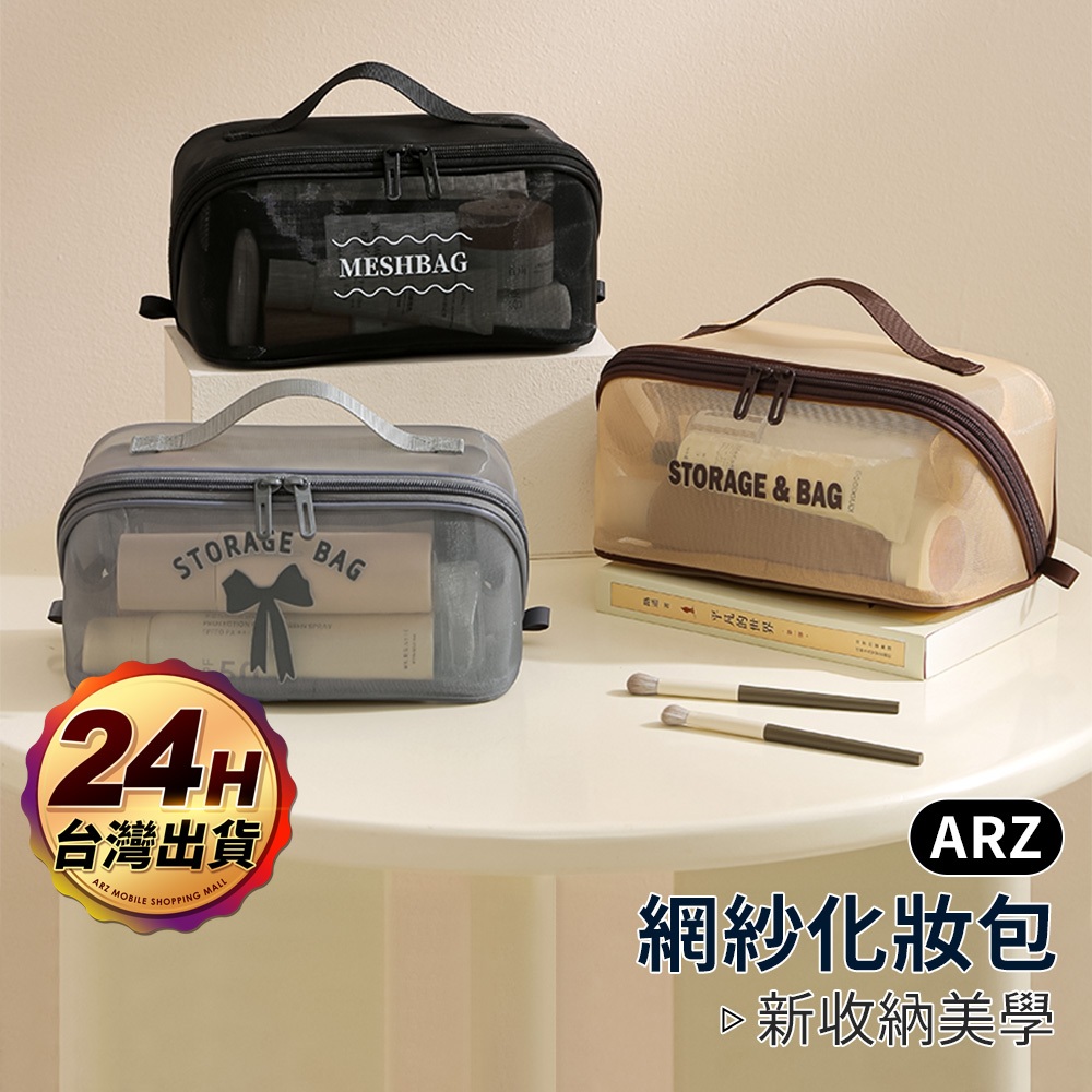 網紗化妝包【ARZ】【G134】網格收納袋 網眼 化妝包 盥洗包 過夜包 旅行收納包 收納袋 網眼包 收納包 網紗收納包黑色|灰色|卡其色Makeup AccessoriesARZ行動商城