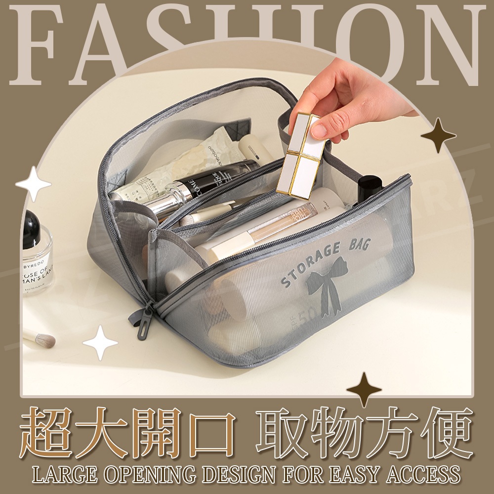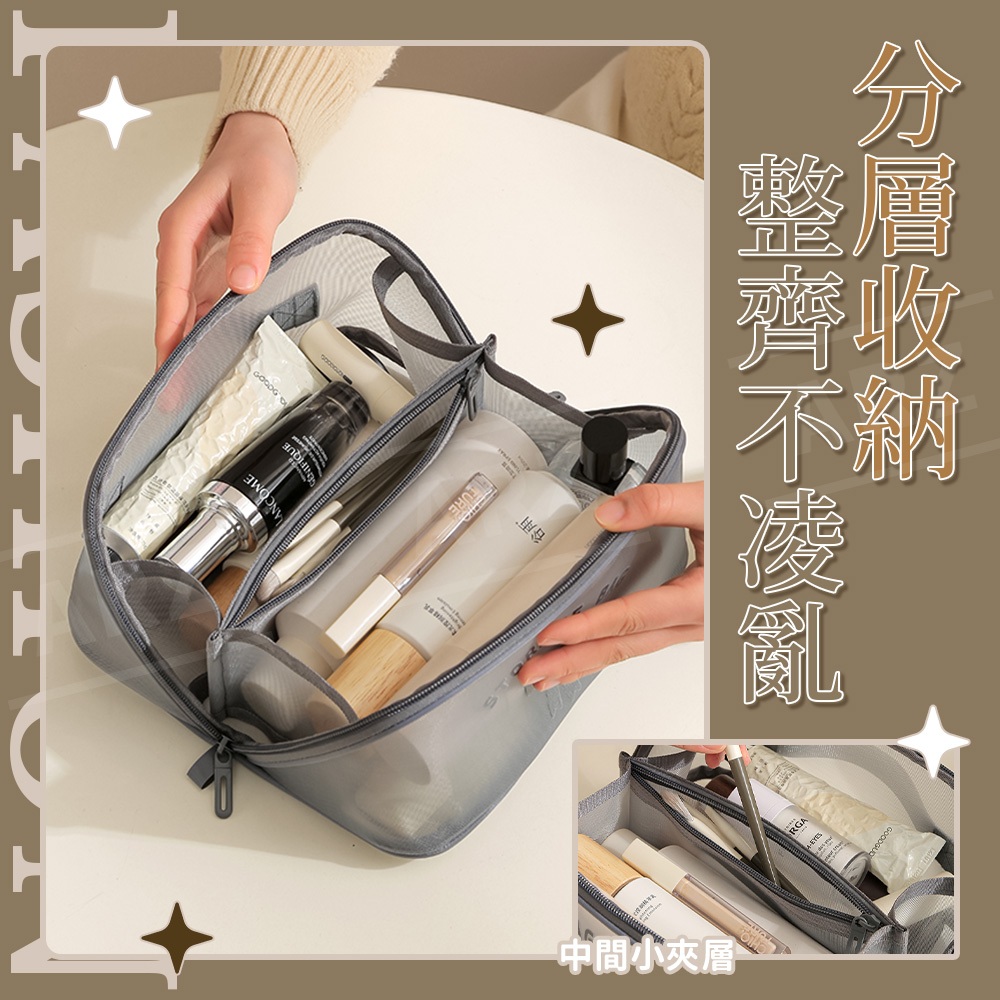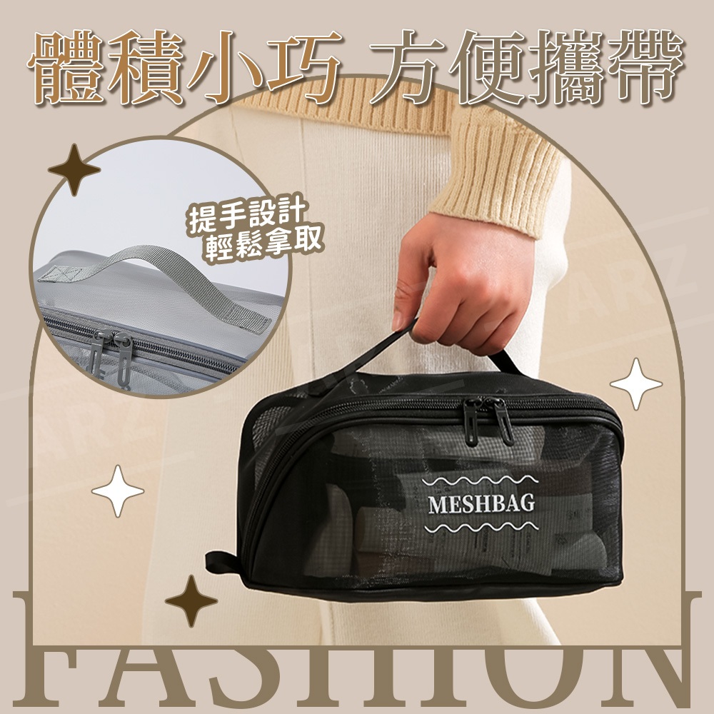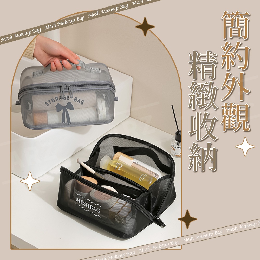 網紗化妝包【ARZ】【G134】網格收納袋 網眼 化妝包 盥洗包 過夜包 旅行收納包 收納袋 網眼包 收納包 網紗收納包黑色|灰色|卡其色Makeup AccessoriesARZ行動商城