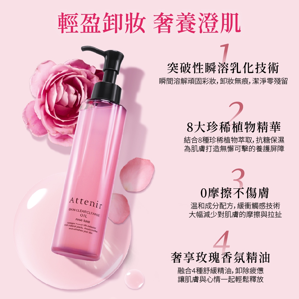 【Attenir 艾天然】淨顏亮膚卸妝油175ml 玫瑰香 | 養卸合一 抗氧提亮 潔顏油 卸妝 日本原裝進口 品牌直營【Attenir 艾天然】淨顏亮膚卸妝油175ml 玫瑰香 | 養卸合一 抗氧提亮 潔顏油 卸妝 日本原裝進口 品牌直營Makeup RemoversAttenir 艾天然 官方旗艦店