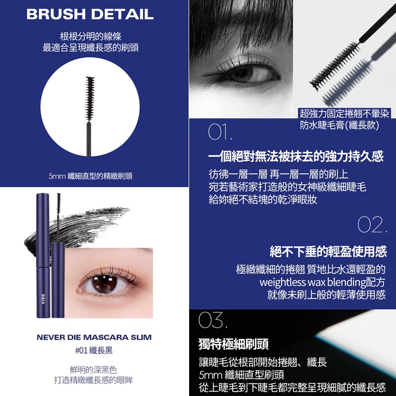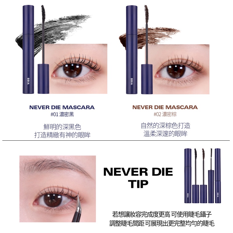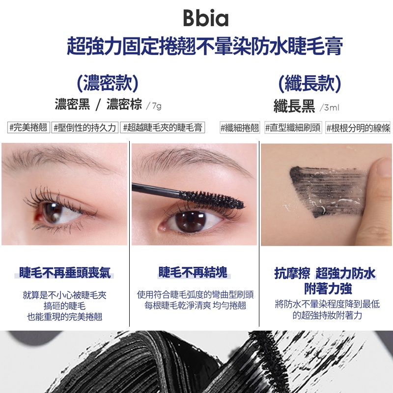 【Bbia 碧娥】新款 超強力固定捲翹不暈染防水睫毛膏3色 濃密款 纖長款 睫毛膏新品 #02濃密棕|新品 #01纖長黑 纖長效果|#01濃密黑EyesBBIA & EGLIPS 台灣官方旗艦店(台灣唯一總代理)