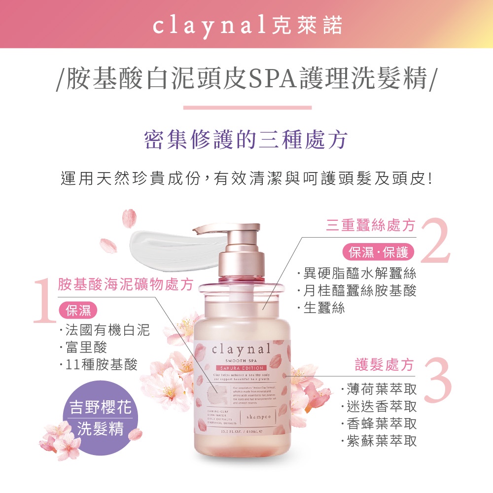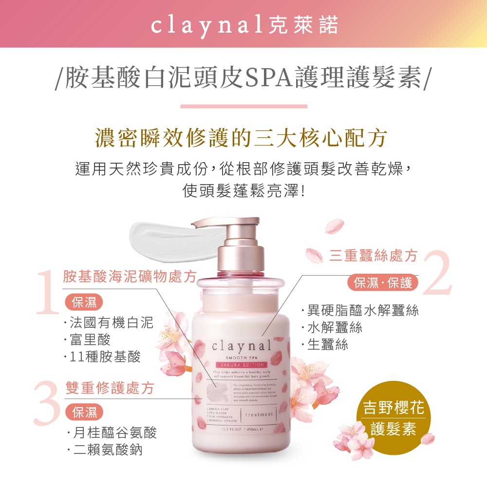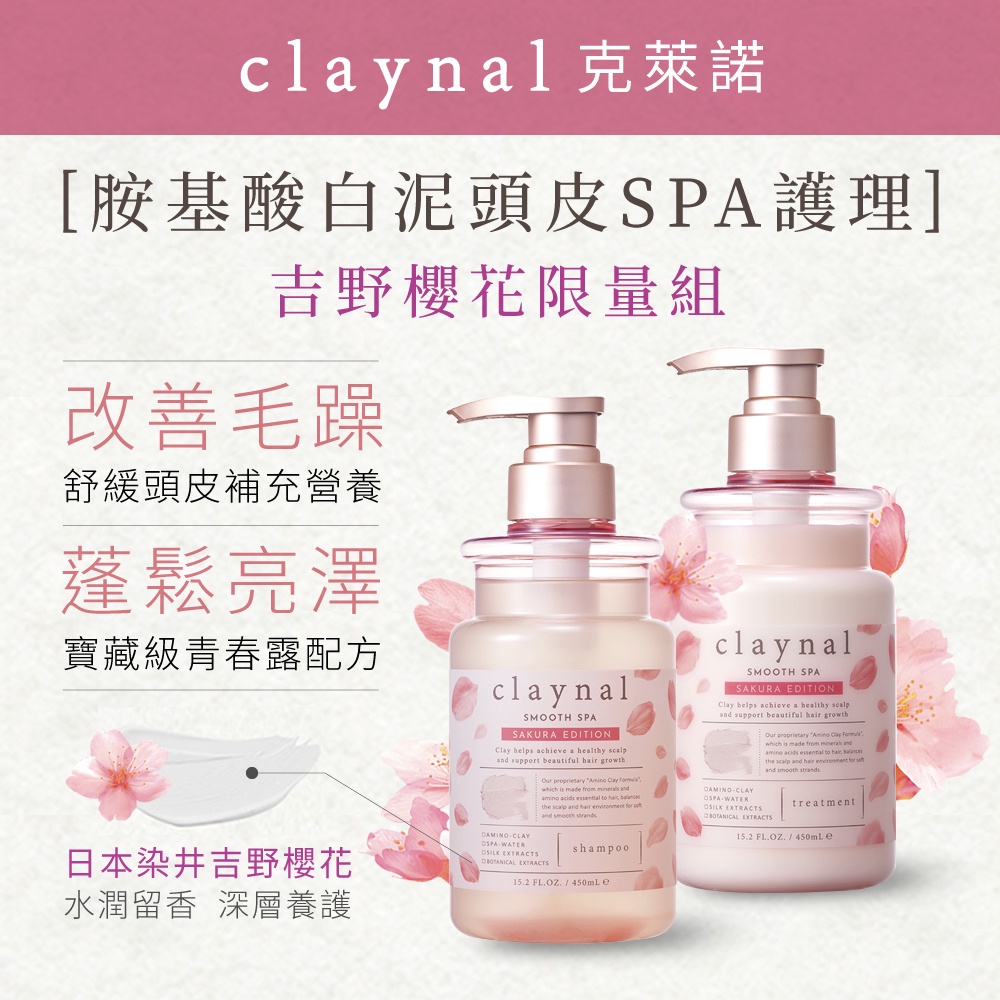 【claynal克萊諾】胺基酸白泥頭皮SPA洗護組(吉野櫻花)450ml+450ml【claynal克萊諾】胺基酸白泥頭皮SPA洗護組(吉野櫻花)450ml+450mlHair TreatmentBeyond__beauty