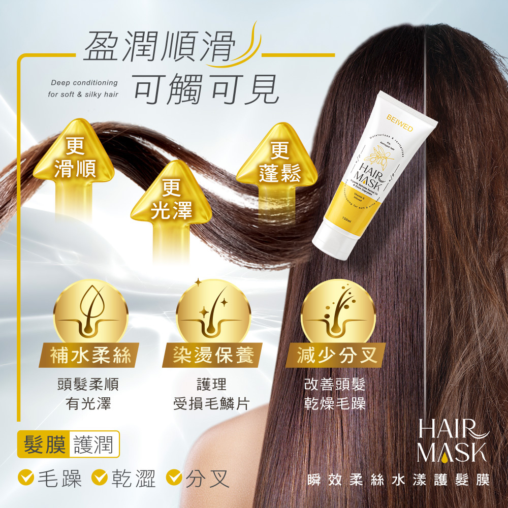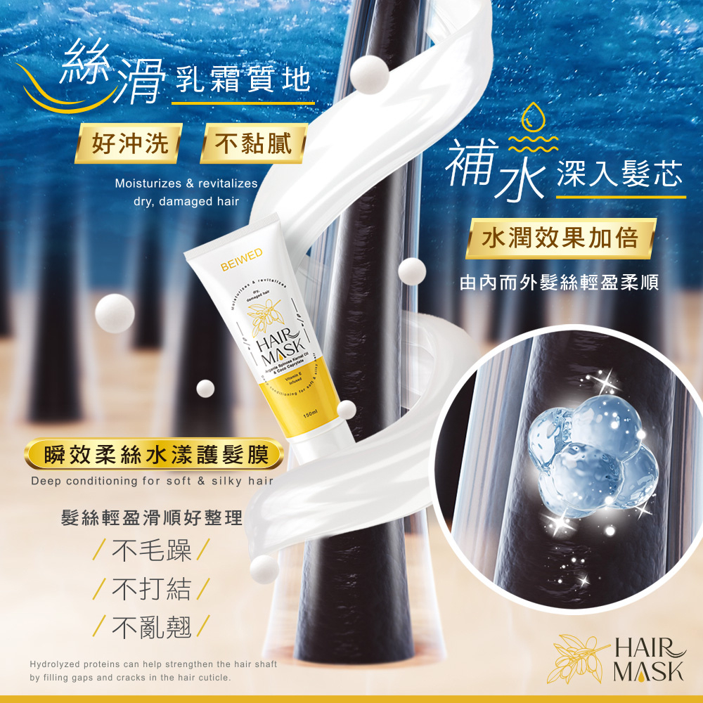 BEIWED 瞬效柔絲水漾護髮膜 150mlBEIWED 瞬效柔絲水漾護髮膜 150mlHair TreatmentBEIWED 貝薇美學官方旗艦店