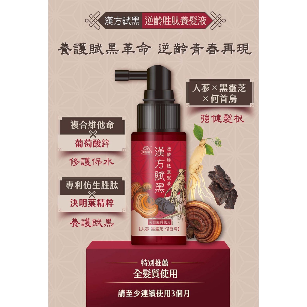 【美吾髮】漢方賦黑 逆齡胜肽養髮液55ml(2入/4入)漢方賦黑漢芳染/何首烏/養髮液/灰白髮/髮根滋養/喚黑