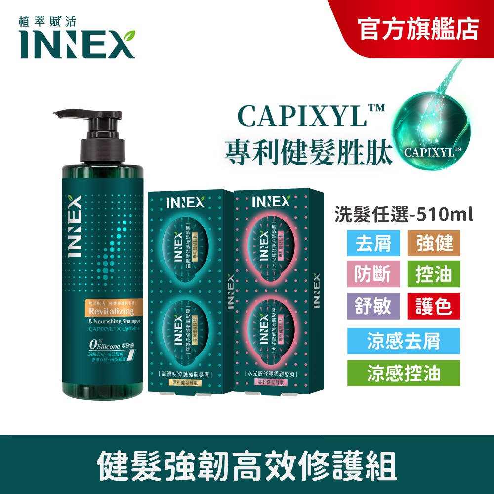 【美吾髮】INNEX植萃賦活 健髮強韌高效修護組〔洗髮精任1+高濃度/水光感修護強韌髮膜2盒〕健髮/護髮/強健/爆水髮膜強健養護,高濃度修護強韌髮膜X2|防斷修護,高濃度修護強韌髮膜X2|控油豐盈,高濃度修護強韌髮膜X2|沁涼控油豐盈,高濃度修護強韌髮膜X2|去屑淨化,高濃度修護強韌髮膜X2|沁涼去屑淨化,高濃度修護強韌髮膜X2|護色耀亮,高濃度修護強韌髮膜X2|舒緩調理,高濃度修護強韌髮膜X2|強韌蓬鬆(新上市),高濃度修護強韌髮膜X2|強健養護,水光感修護柔韌髮膜X2|強韌蓬鬆(新上市),水光感修護柔韌髮膜X2|防斷修護,水光感修護柔韌髮膜X2|控油豐盈,水光感修護柔韌髮膜X2|沁涼控油豐盈,水光感修護柔韌髮膜X2|去屑淨化,水光感修護柔韌髮膜X2|沁涼去屑淨化,水光感修護柔韌髮膜X2|護色耀亮,水光感修護柔韌髮膜X2|舒緩調理,水光感修護柔韌髮膜X2Shampoo【美吾髮購物網】