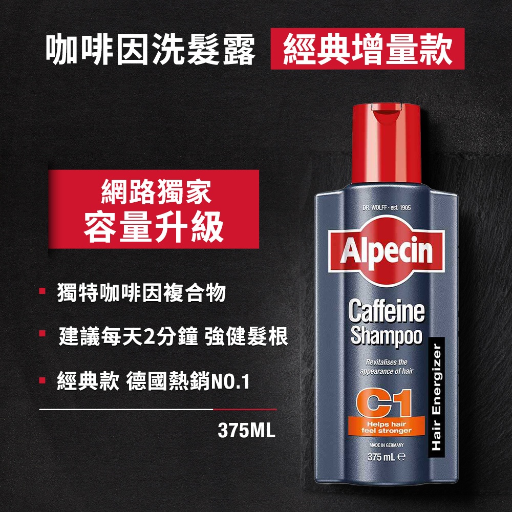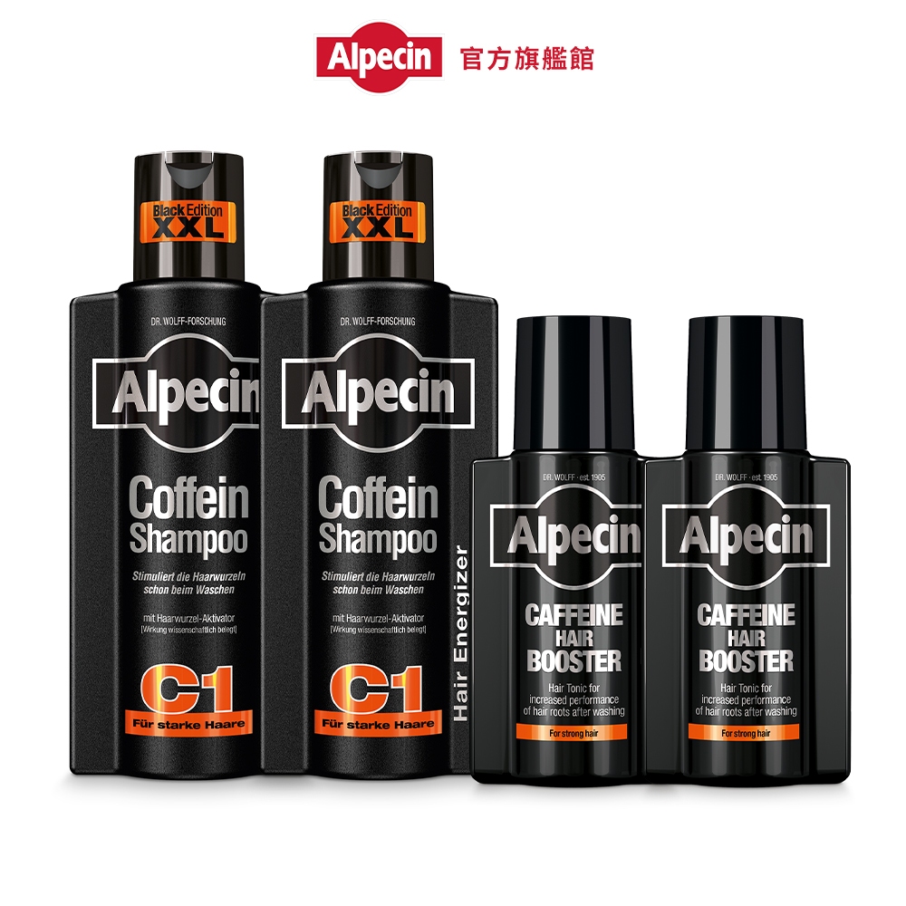 Alpecin Black C1咖啡因洗髮露黑色經典款375mlx2+咖啡因髮根強健精華液 200mlx2洗髮露x2+精華液x2ShampooAlpecin/Plantur/Bioniq貝歐尼-Dr. Wolff官方商城