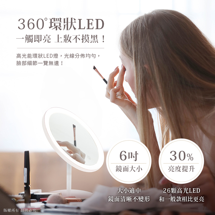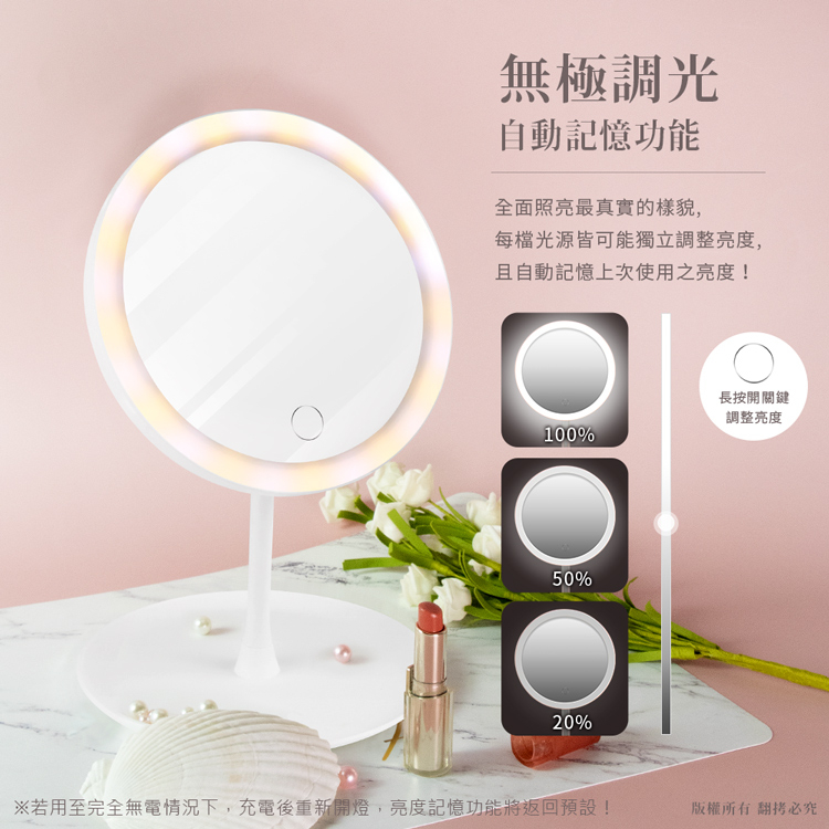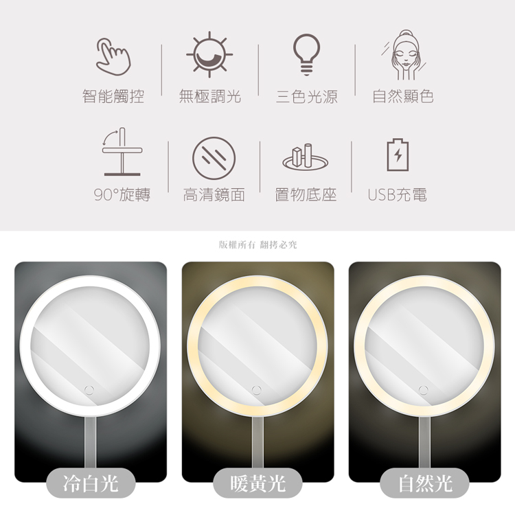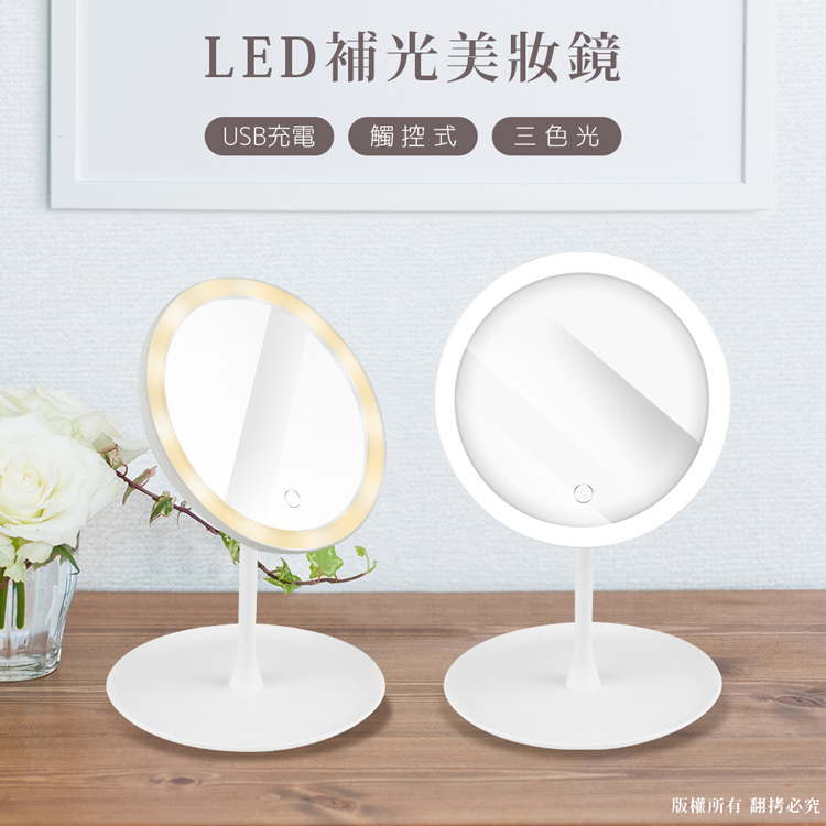 三色無極調光 觸控LED化妝鏡 USB充電【現貨】化妝鏡 美妝鏡 智能化妝鏡 LED鏡子 補光燈 補光化妝鏡 LED鏡全新Makeup Accessoriesaibo 3C生活館