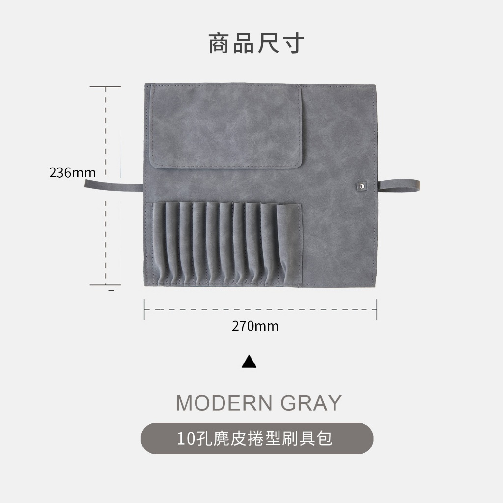 BAYBEYLA 貝貝拉 摩登灰10孔麂皮捲型刷具包【隔日到貨】化妝刷收納 刷具收納 刷具包 捲包 化妝包【限時特賣】摩登灰10孔麂皮刷具包|【10格】摩登灰10孔麂皮刷具包Makeup AccessoriesBAYBEYLA 貝貝拉-專業彩妝刷具品牌