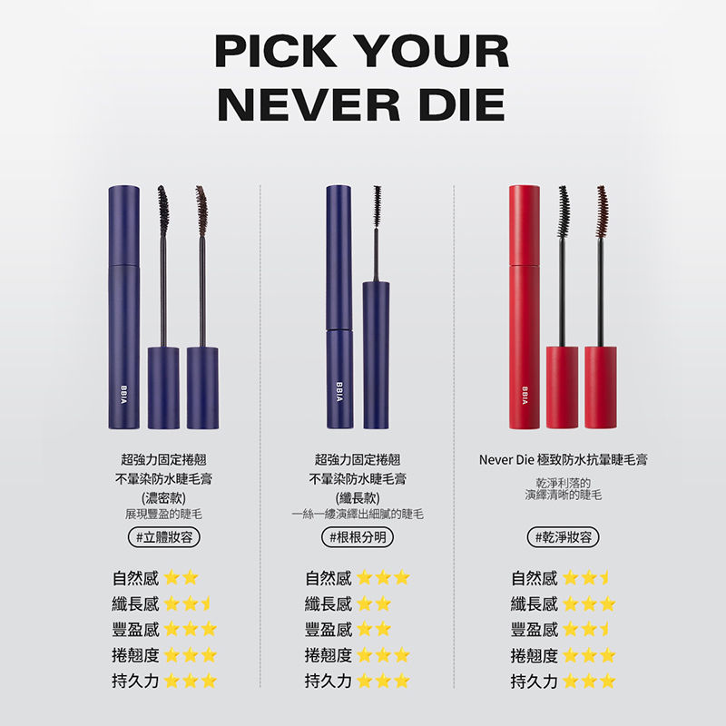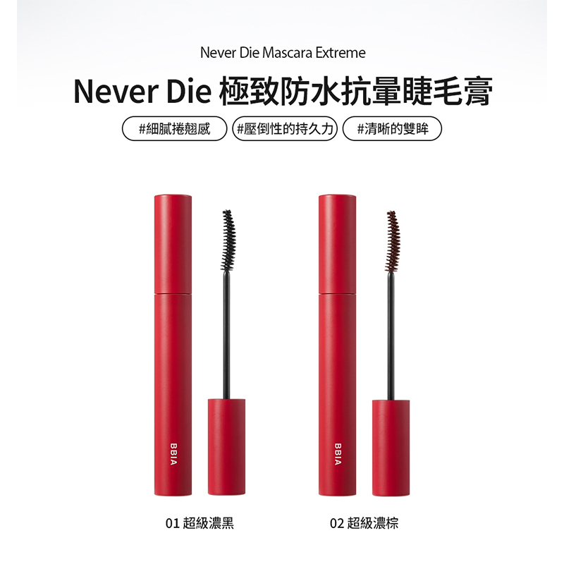 【Bbia 碧娥】新款 NEVER DIE 極致防水抗暈睫毛膏2色 濃密纖長 睫毛膏#01 超級濃黑 SUPER BLACK|#02 超級濃棕 SUPER BROWNEyesBBIA & EGLIPS 台灣官方旗艦店(台灣唯一總代理)