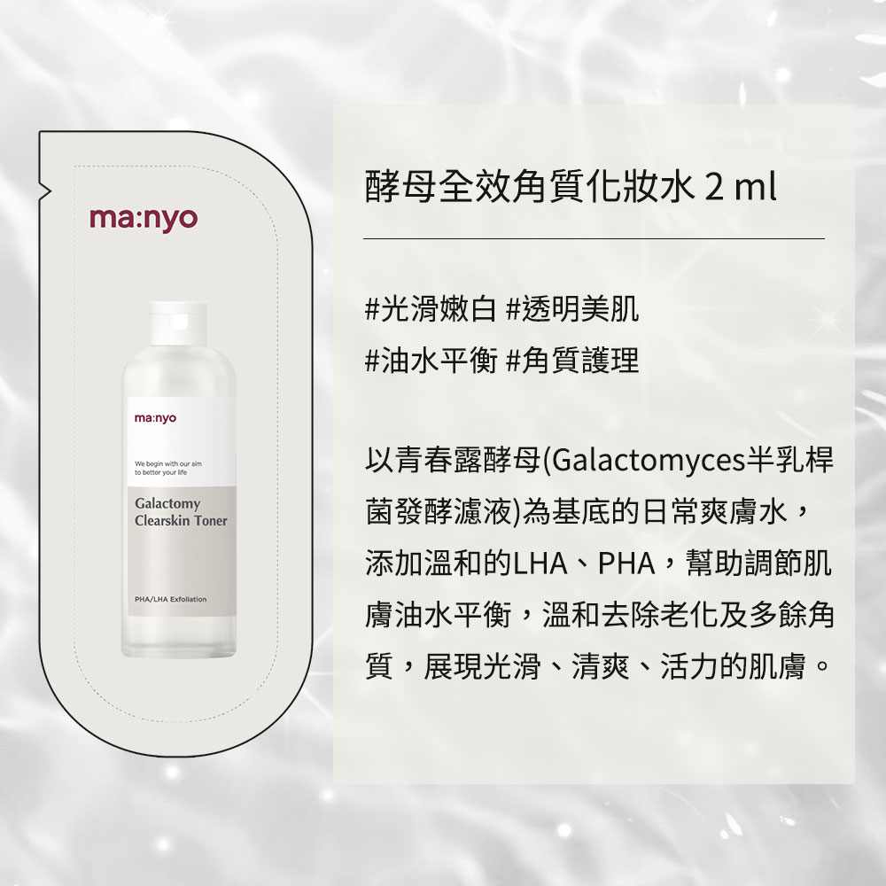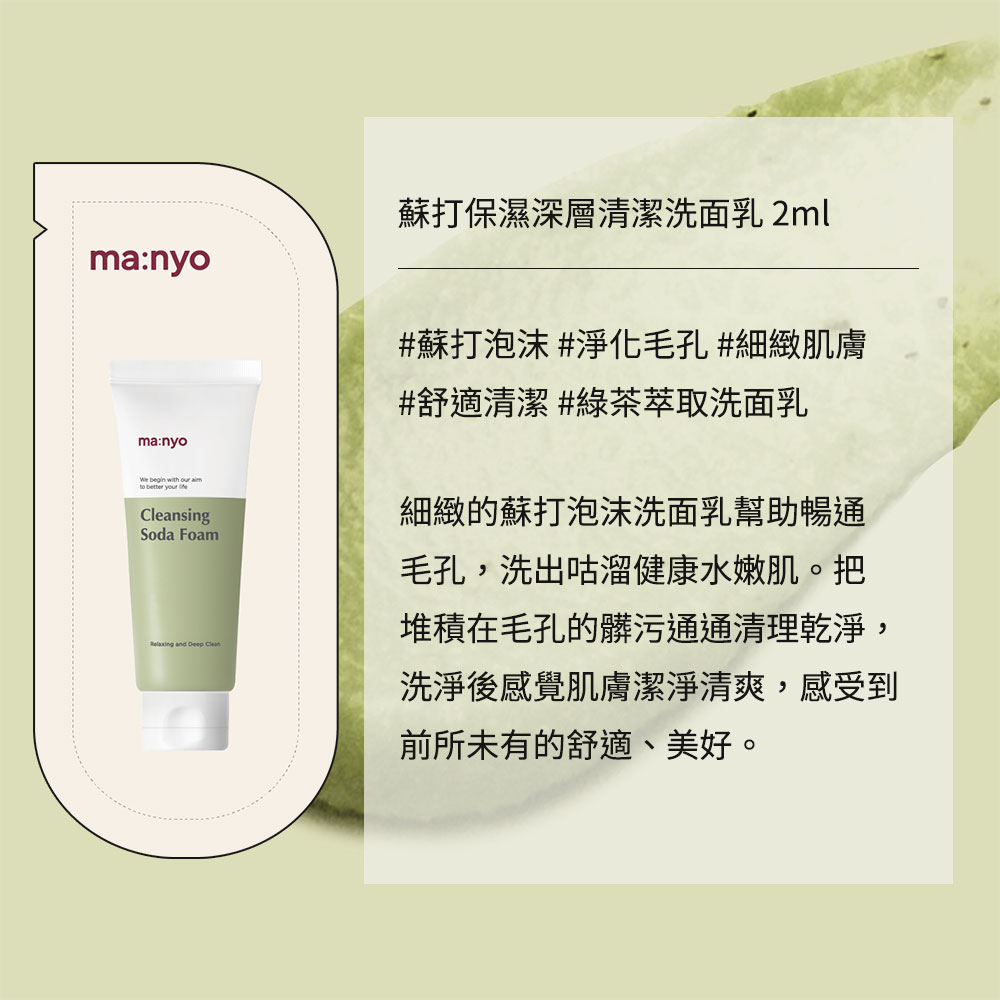 【ma:nyo魔女工廠】小樣/試用包/旅行包/小瓶保養 (台灣總代理)純淨卸妝油 2ml(2025/7/26)|蘇打洗面乳2ml 2025/09/08|柔護深層洗面乳 2ml|酵母全效角質化妝水2ml|酵母抗皺乳霜1.5ml(25/11/3)|BIFIDA逆齡再生保濕棉片(2片)Body Wash & Soap4U2 & ma:nyo魔女工廠 官方旗艦店