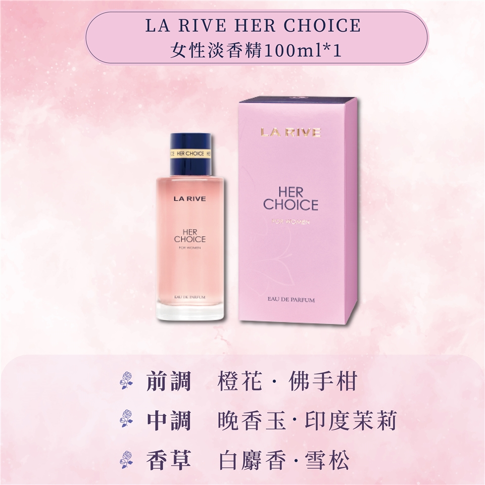 LA RIVE HER CHOICE FOR WOMEN淡香精禮盒(100ml+噴霧150ml)橙花/佛手柑/茉莉/麝香一組ACI精品香水