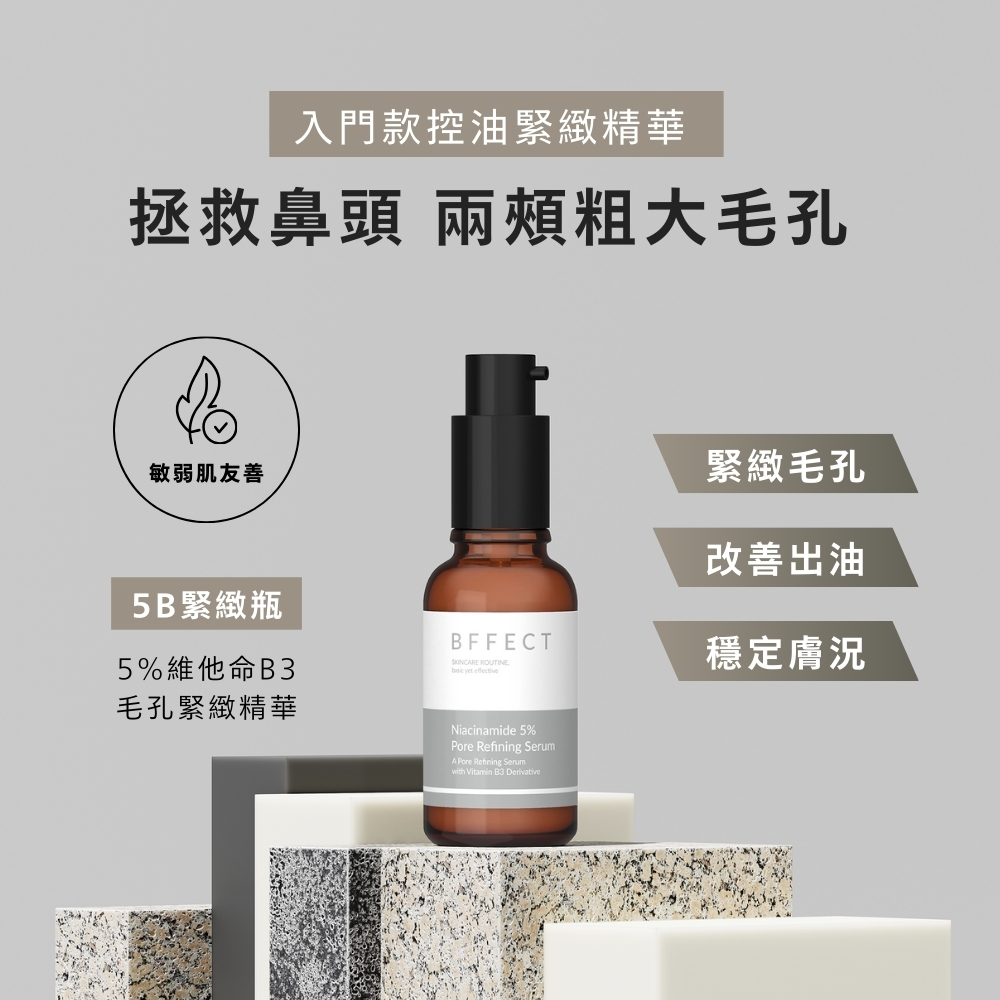 BFFECT 【5B緊緻瓶】 5%維他命B3毛孔緊緻精華 30ml5B緊緻瓶 1入|5B緊緻瓶 2入Facial Serum & EssenceBFFECT 好肌膚精華研究室