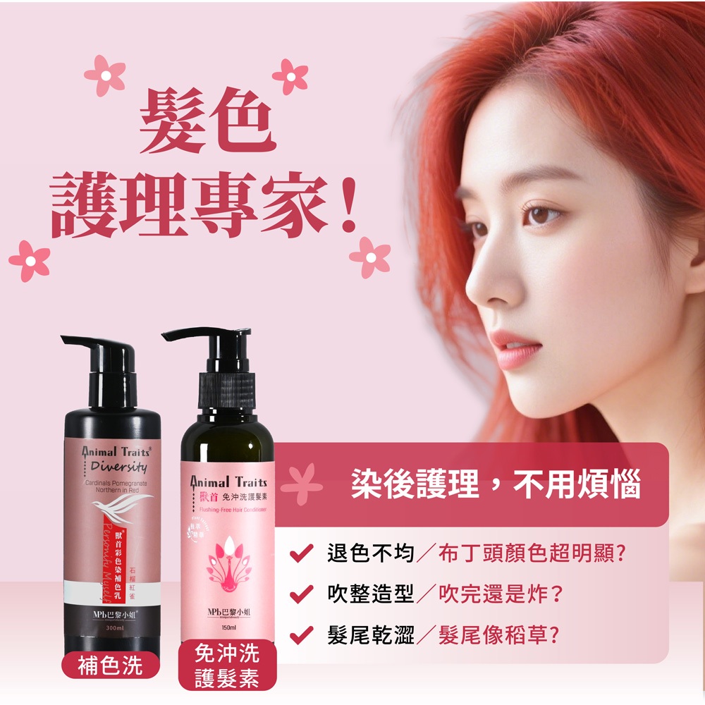 【MPB巴黎小姐】 蝦皮聯名限定 炫髮補色套組 獸首彩色染補色乳300ML+獸首免沖洗護髮素 補色洗髮精 補色洗 矯色去黃金絲|300ml (矯色洗),獸首護髮素150ml|芋頭鸚鵡|300ml (灰紫色),獸首護髮素150ml|晶灰鸚鵡|300ml(銀灰色),獸首護髮素150ml|冰鑽藍鵲|300ml(藍色),獸首護髮素150ml|翡綠繡眼|300ml (綠色),獸首護髮素150ml|石榴紅雀300ml(紅色),獸首護髮素150ml|奶茶鴛鴦|300ml(奶茶色),獸首護髮素150ml|【獨家色】炫紫蜂鳥|300ml(藍紫色),獸首護髮素150ml|霧光白翁|300ml(淺灰色),獸首護髮素150ml|【蝦皮聯名】琥珀棕鷹|300ml(棕色),獸首護髮素150ml|蜜桃粉鶴|300ml(粉紅色),獸首護髮素150ml|柑橘琉璃|300ml (橘色),獸首護髮素150ml|莓果雀鶯|300ml (紫紅色),獸首護髮素150ml|粉灰知更|300ml (粉灰紫),獸首護髮素150ml|【獨家色】藍灰山雀|300ml(藍灰色),獸首護髮素150mlShampoo【MPB巴黎小姐】 官方旗艦店 沙龍級 美髮 熱蠟除毛 美睫