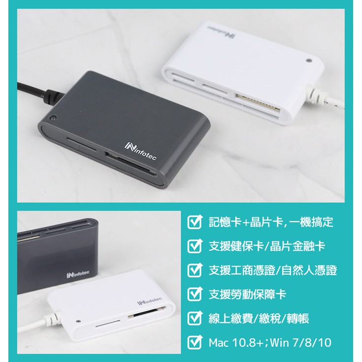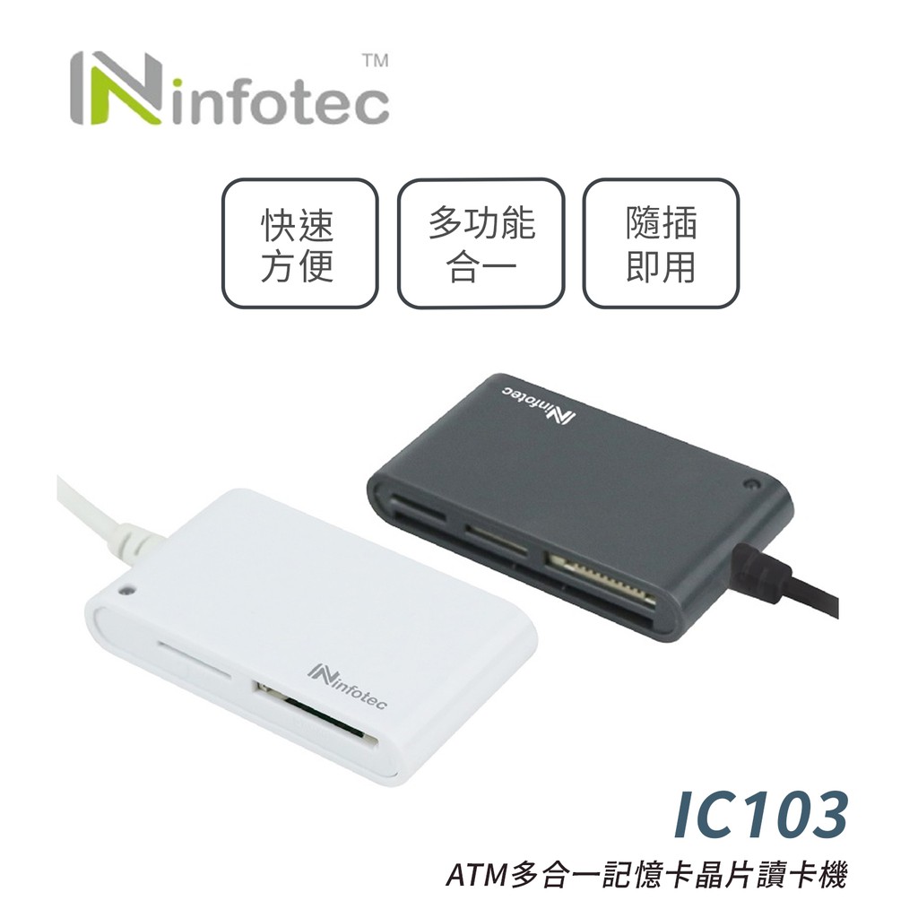infotec IC103 ATM多合一記憶卡晶片讀卡機 (鐵灰/白色)鐵灰|白色USB Hubs & Card Readers 阿秒市集